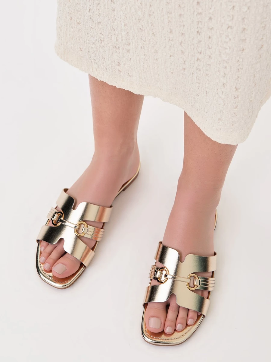Stylowe klapki damskie wykonane z wysokiej jakości materiałów, zapewniających komfort noszenia przez cały dzień. Nowoczesny design i staranne wykończenie sprawiają, że buty są idealne na różne okazje. Wygodna konstrukcja zapewnia stabilność i dopasowanie do stopy. Te wyjątkowe buty damskie dostępne są w kolorze GOLD.