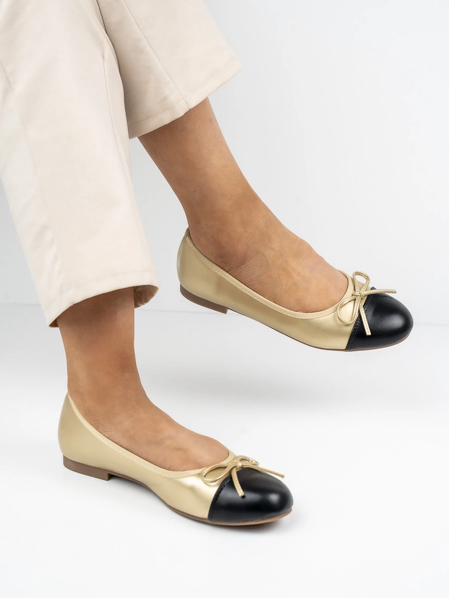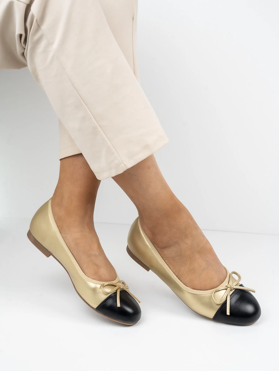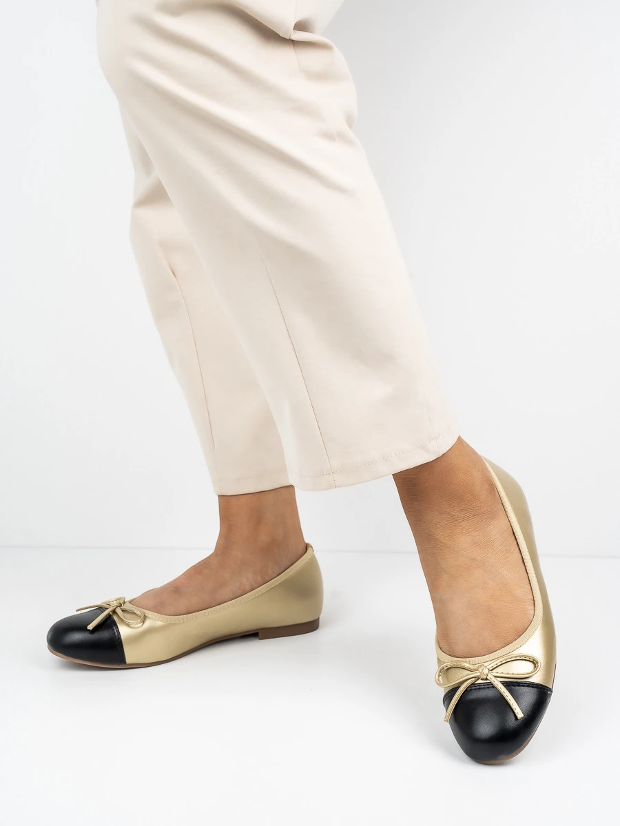 Te eleganckie baleriny w kolorze Gold z ozdobną kokardą stanowią perfekcyjne połączenie stylu i wygody. Idealne do codziennego noszenia, ale także na specjalne okazje. Ich złoty połysk dodaje elegancji i sprawia, że każdy krok będzie pełen uroku.