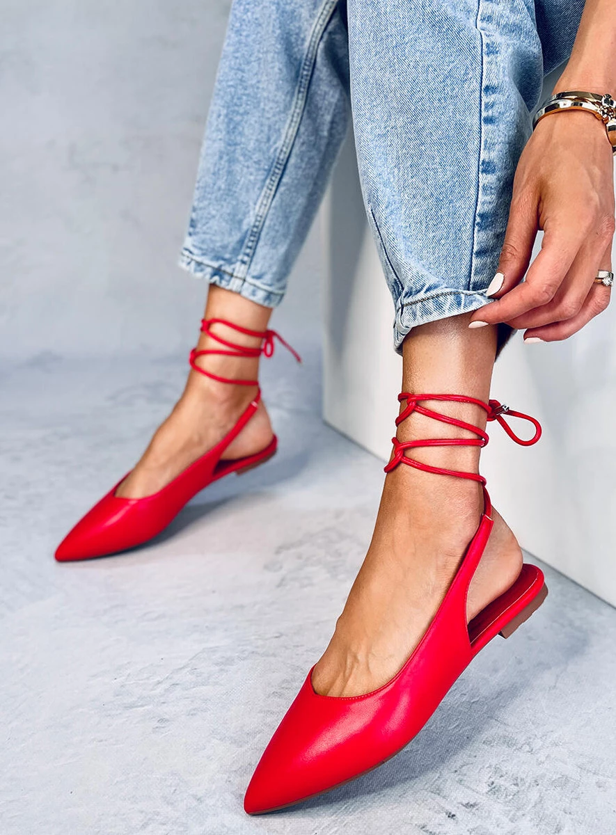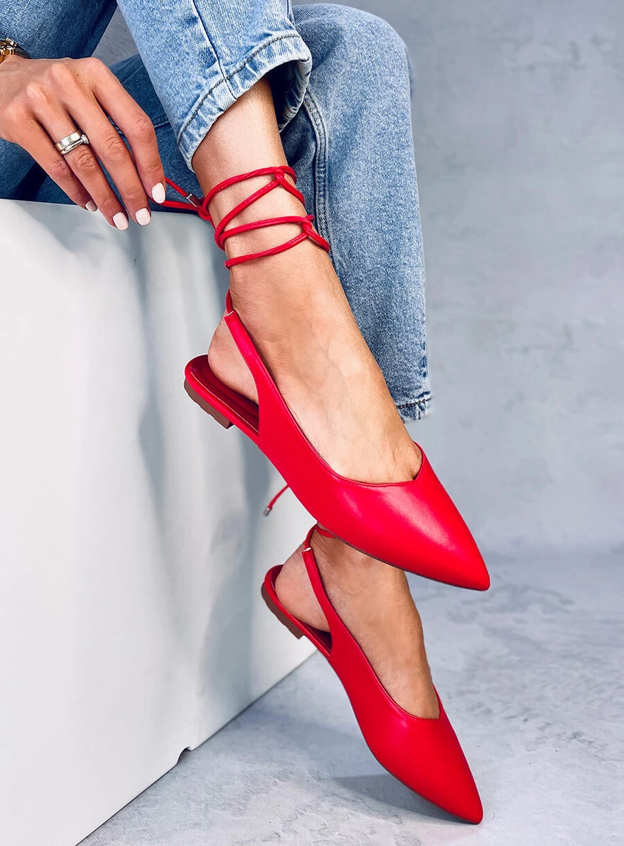 Baleriny z odkrytą piętą wiązane JODY RED