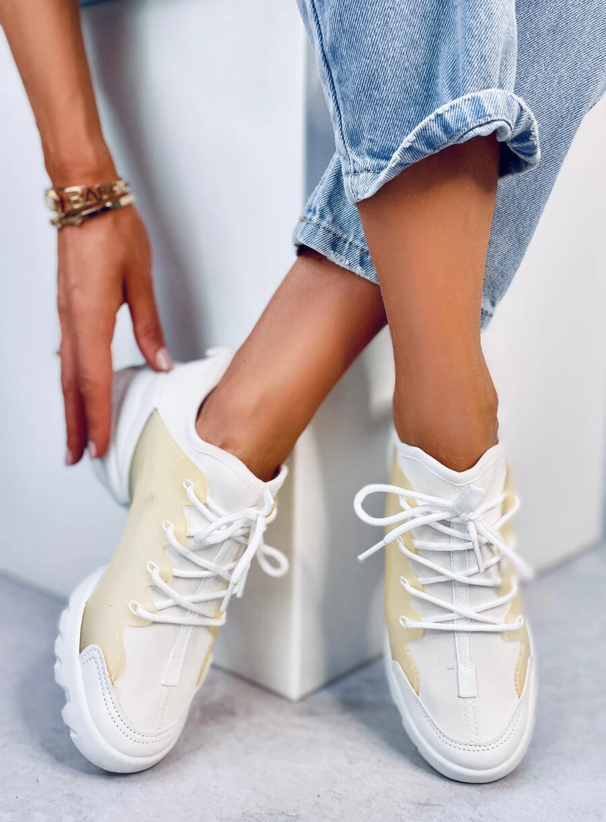 Buty sportowe damskie. Unikalny fason tego modelu doskonale sprawdzi się zarówno w stylizacjach sportowych, jak i tych codziennych. Wygoda idzie w tym przypadku w parze z modą. Nie czekaj i zamów je już teraz! Wnętrze butów wyścielone jest tkaniną. Materiał zewnętrzny – tkanina neoprenowa + skóra ekologiczna.