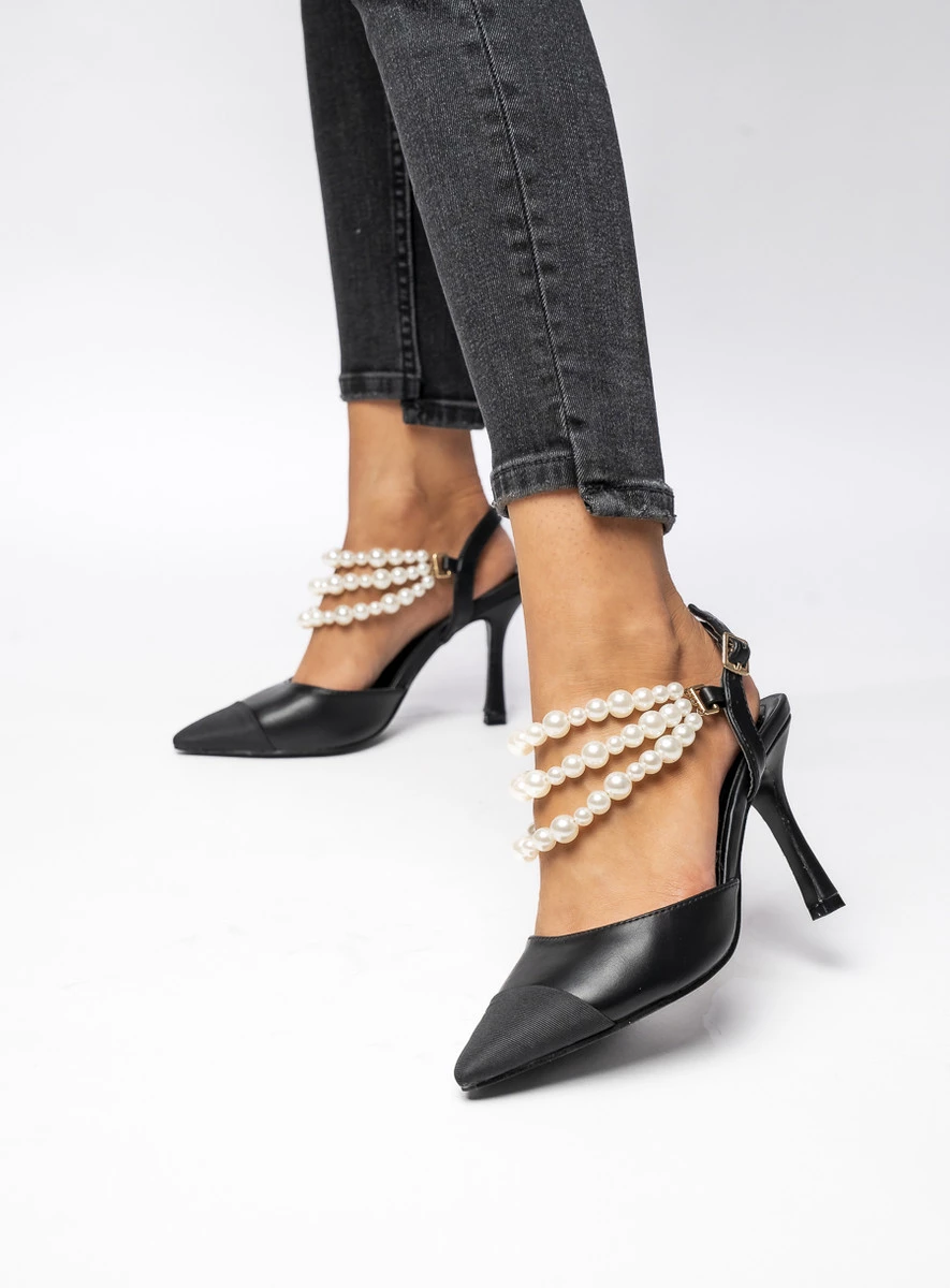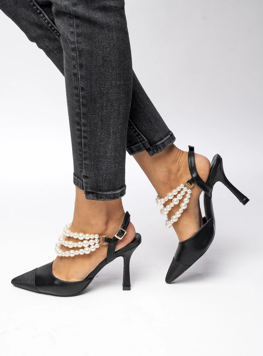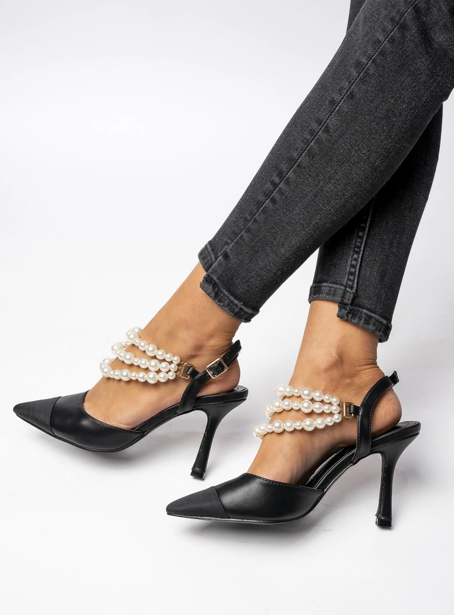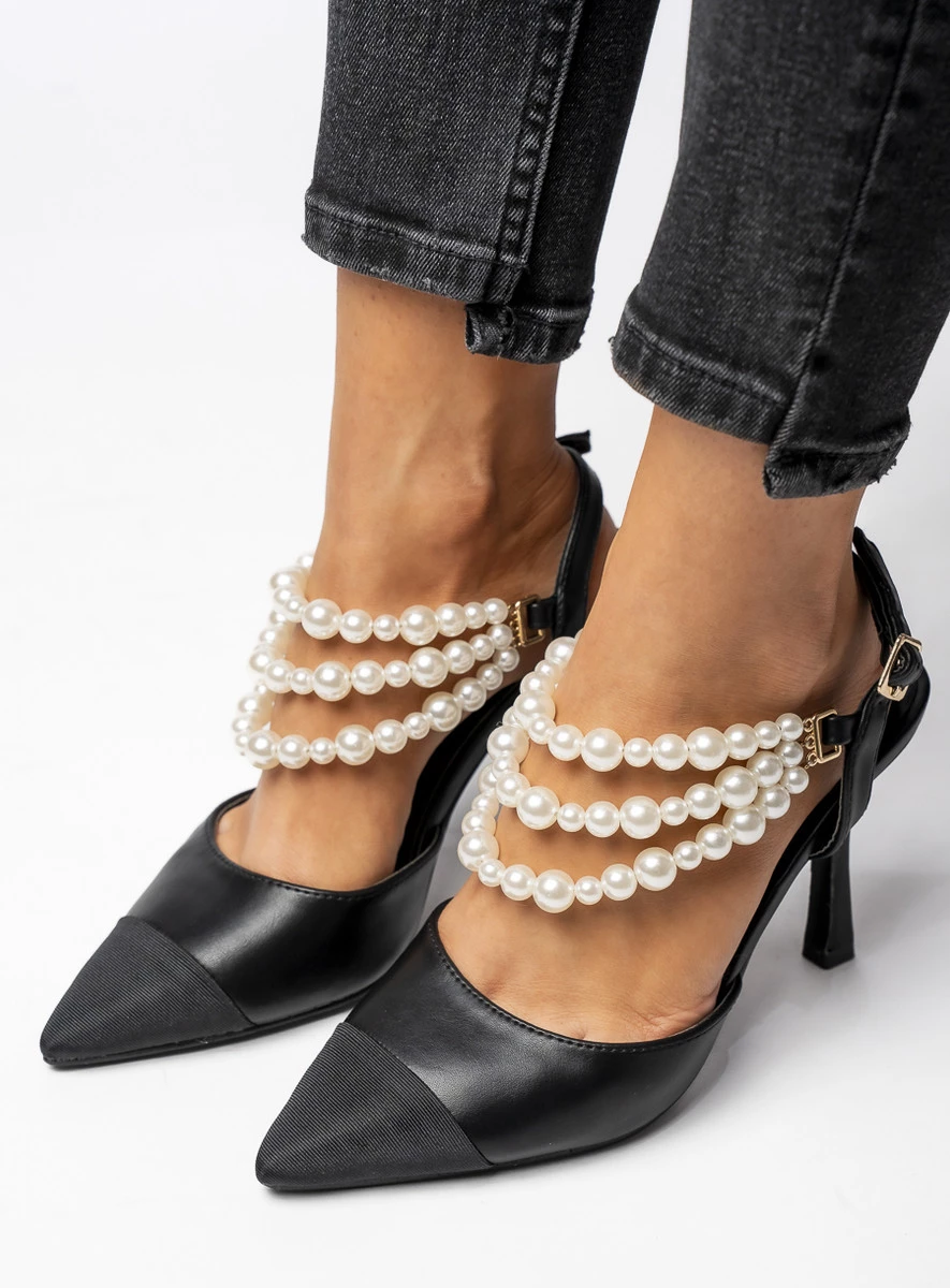 Czółenka z odkrytą pięta z perłami HARMONY BLACK