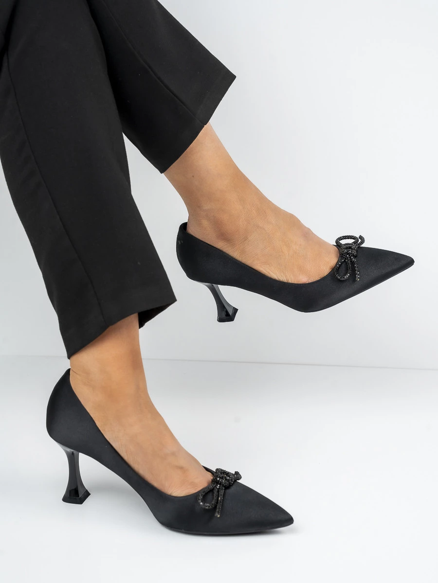 Czółenka z ozdobnym węzłem na niskim obcasie w kolorze Black