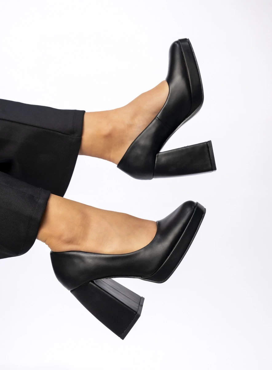 ESME BLACK to klasyczne czółenka na wysokim słupku, które łączą elegancję z komfortem noszenia. Ich ponadczasowy czarny kolor sprawia, że są uniwersalne i idealnie dopasują się do każdej stylizacji – od formalnych okazji po codzienne wyjścia. Stabilny obcas oraz delikatna platforma zapewniają wygodę, a minimalistyczny design dodaje im klasy.