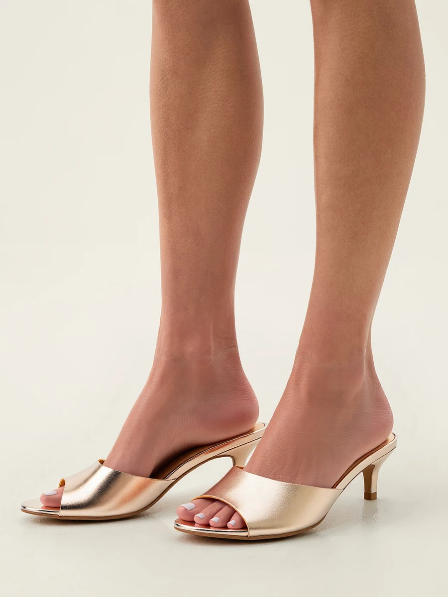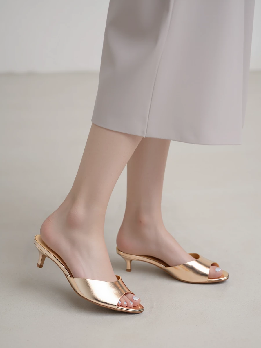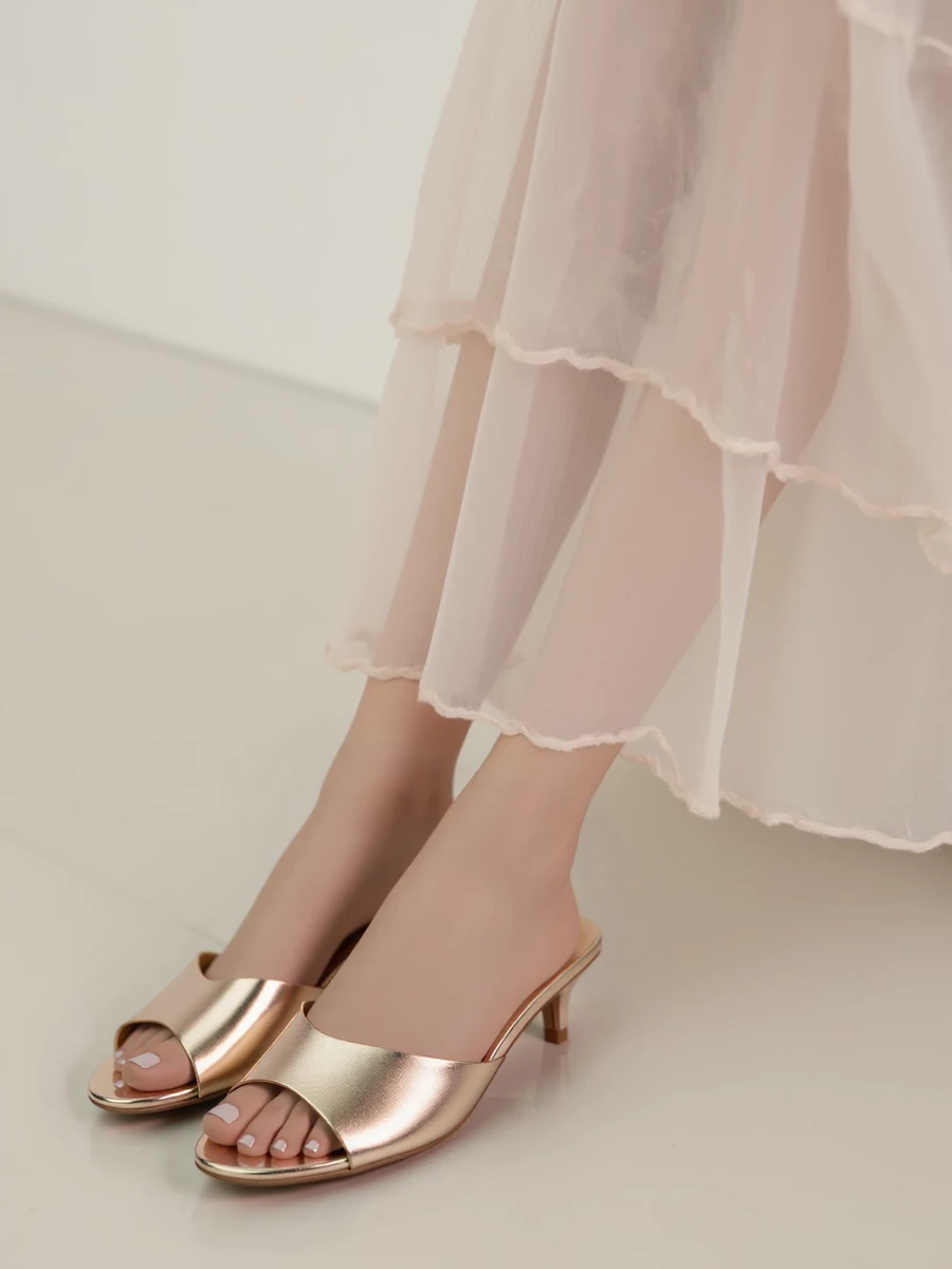 Klapki KARA w kolorze champagne to elegancka propozycja, która łączy prostotę z subtelnym blaskiem. Wykonane z wysokiej jakości materiałów, świetnie komponują się zarówno z casualowymi, jak i bardziej formalnymi stylizacjami. Dzięki wygodnemu obcasowi, zapewniają komfort noszenia przez cały dzień.