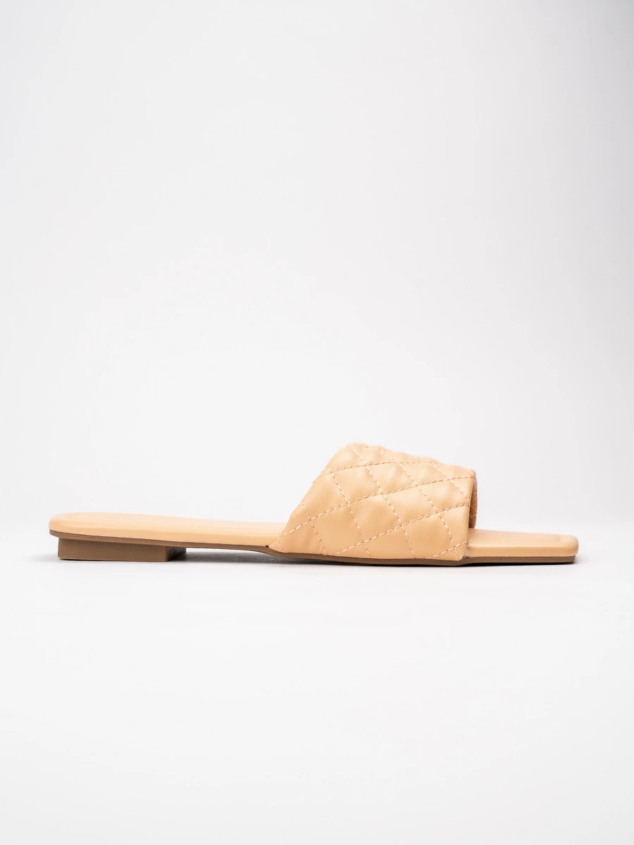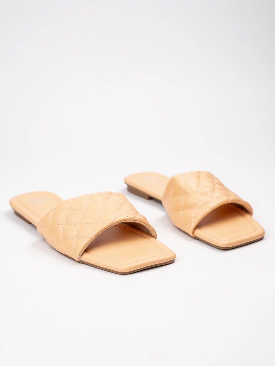Damskie Klapki MELIA ORANGE to połączenie subtelnego minimalizmu z miękką, stylową fakturą. Szeroki pasek wykonany z pikowanej ekoskóry w delikatnym odcieniu beżu otula stopę i zapewnia wygodę. Kwadratowy nosek oraz płaska podeszwa nadają klapkom nowoczesnego wyglądu, idealnie wpisując się w aktualne trendy. To model, który doskonale dopełni letnie stylizacje – od zwiewnych sukienek po jeansowe szorty.