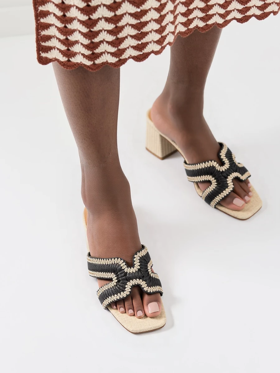 Klapki FINDLAY w kolorze BLACK (czarny) to elegancka i stylowa propozycja na ciepłe dni. Wierzch butów ozdobiony jest plecionką w kontrastowym odcieniu, która nadaje im wyjątkowego charakteru. Klapki na stabilnym obcasie zapewniają wygodę i komfort przez cały dzień. Idealne do codziennych stylizacji, na spacer, do pracy, czy na imprezę. Ich klasyczny design z nowoczesnym akcentem sprawia, że będą pasować do wielu różnych ubiorów.