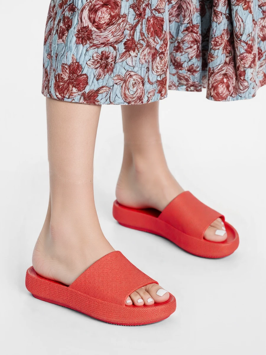 Klapki VIVO (czerwone) to wygodny wybór na letnie dni. Wykonane z lekkiego materiału, doskonale nadają się na basen, plażę lub codzienne spacery w ciepłe dni. Ich prosty, minimalistyczny design z teksturowaną powierzchnią zapewnia komfort i przyczepność, a jaskrawy czerwony kolor nadaje im energiczny, letni charakter. Idealne na wakacyjne wyjazdy, do ogrodu lub na relaks przy basenie.