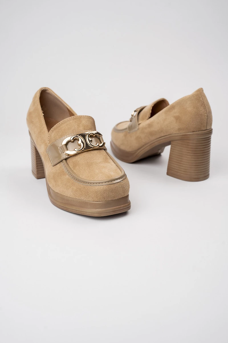 Damskie Loafersy LUX GRACE KHAKI – Elegancja i Stabilny Obcas