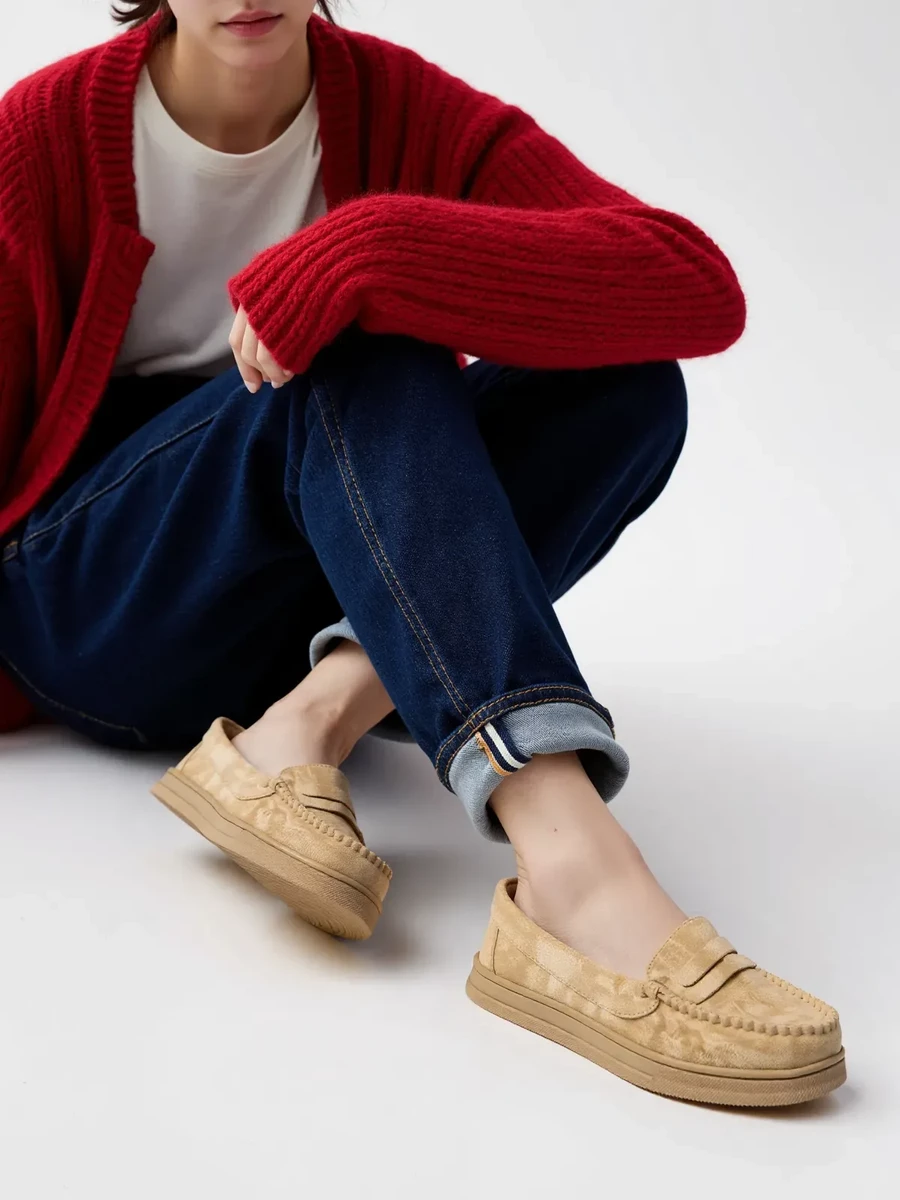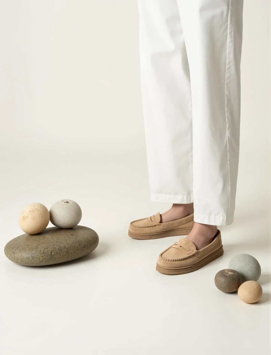 Damskie Mokasyny – Beżowe, Zamszowe Martina BEIGE