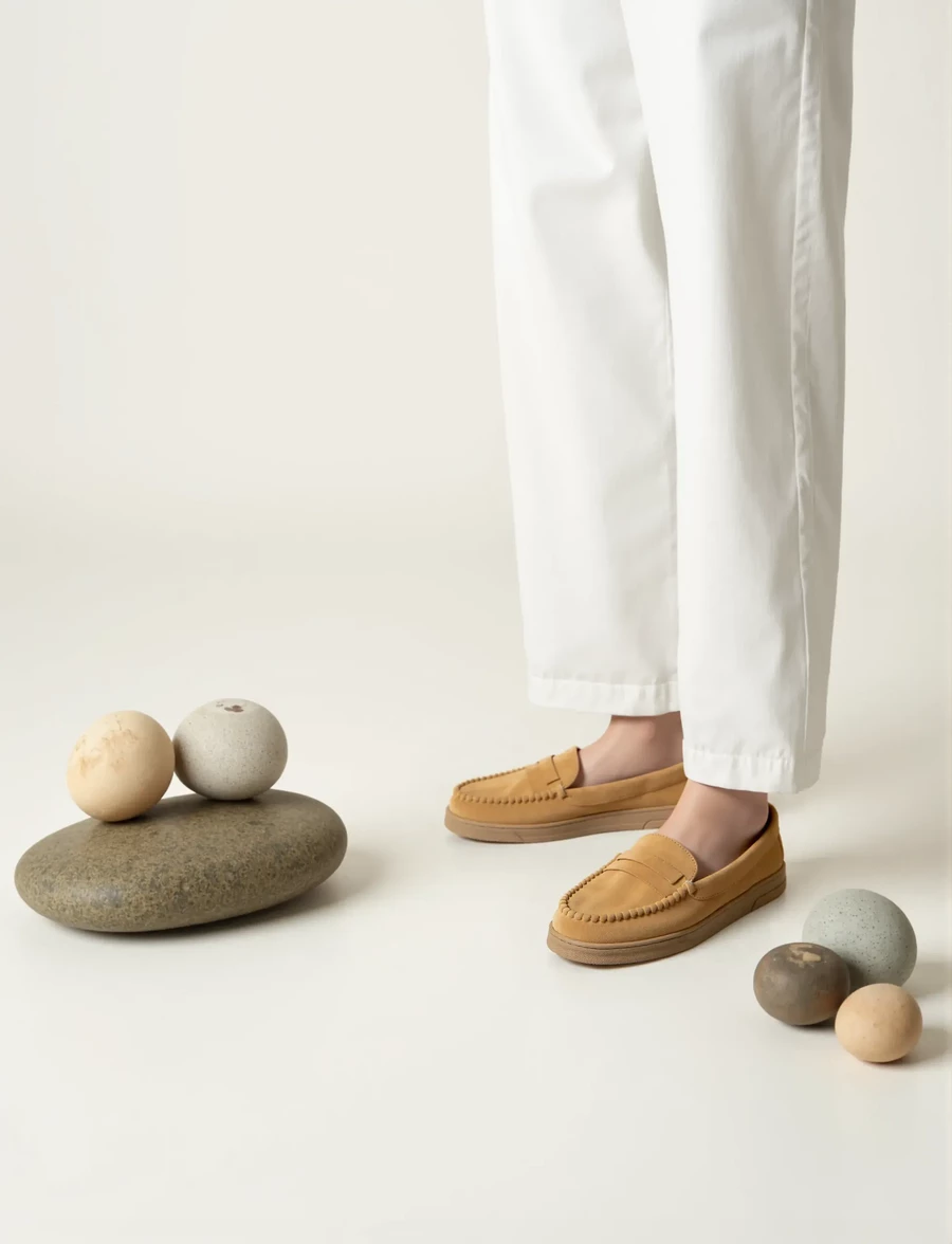 Mokasyny Martina CAMEL to ponadczasowy model łączący wygodę i styl, idealny na każdą okazję. Wykonane z miękkiej zamszowej skóry ekologicznej, doskonale dopasowują się do stopy i zapewniają komfort noszenia przez cały dzień. Minimalistyczny design z delikatnymi przeszyciami podkreśla ich klasyczny charakter, a lekka, elastyczna podeszwa gwarantuje wygodę podczas codziennego użytkowania. Doskonale komponują się zarówno z jeansami, jak i eleganckimi spodniami, tworząc modny, casualowy look.
