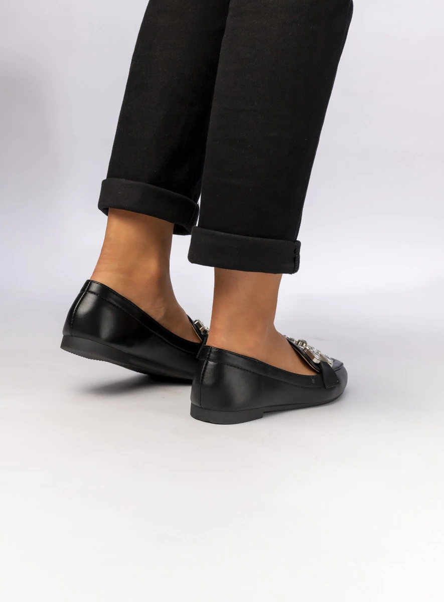 Eleganckie mokasyny ELEA BLACK to połączenie klasyki z nowoczesnym stylem. Wyróżniają się efektowną ozdobą z kryształków, która nadaje im luksusowego charakteru. Wygodna podeszwa i klasyczny krój sprawiają, że idealnie sprawdzą się zarówno na co dzień, jak i na bardziej oficjalne okazje. Doskonałe do stylizacji casualowych i eleganckich.