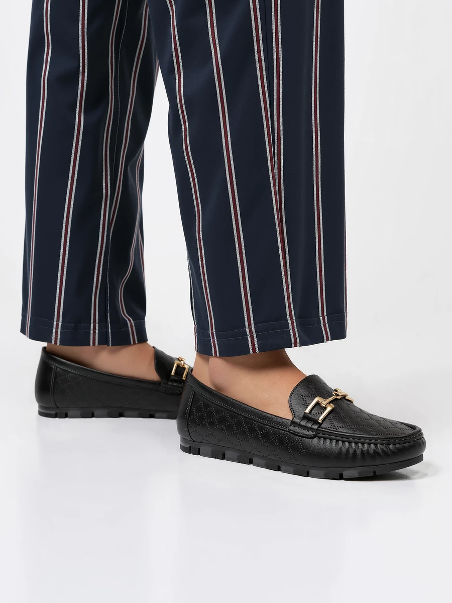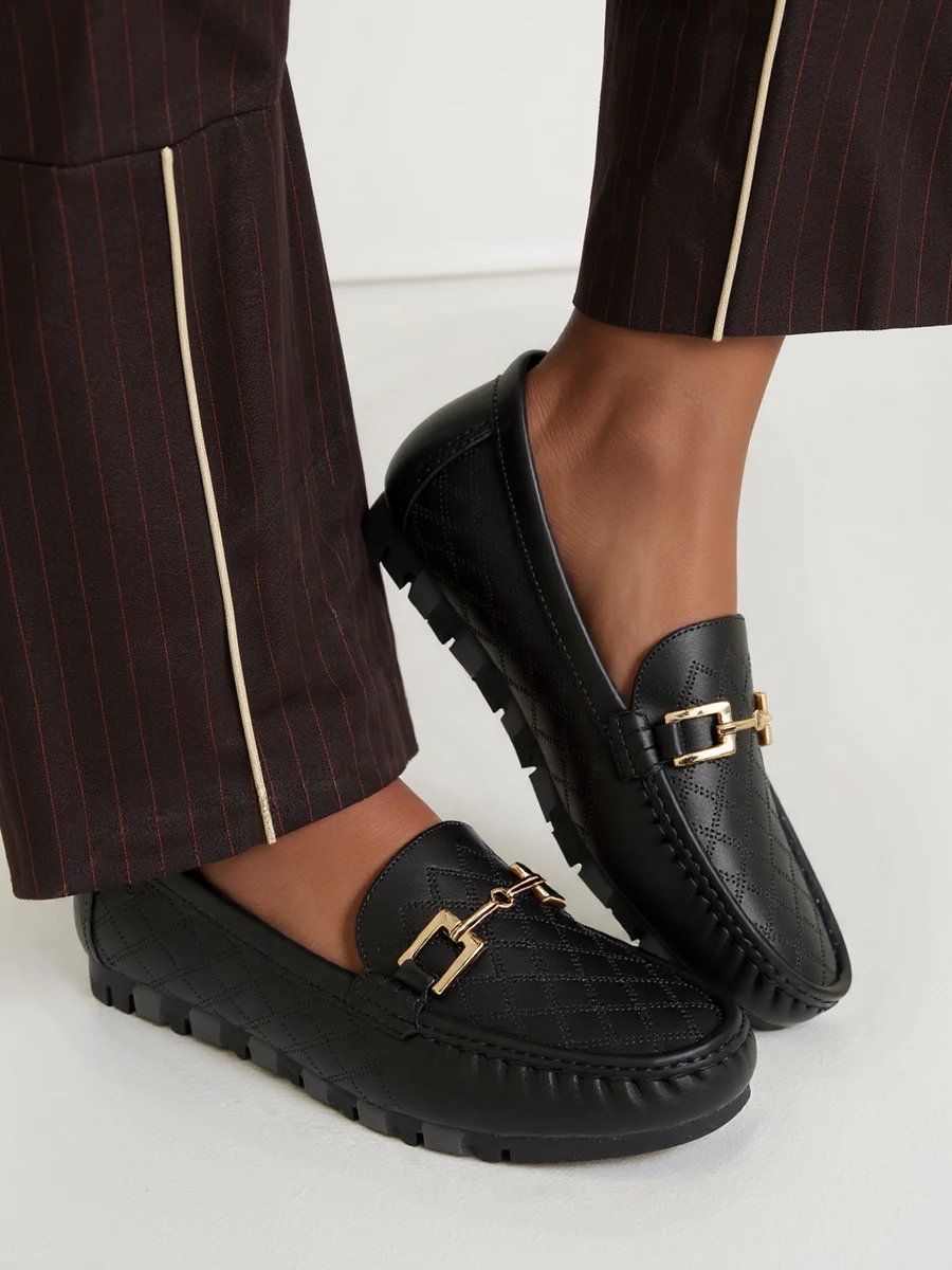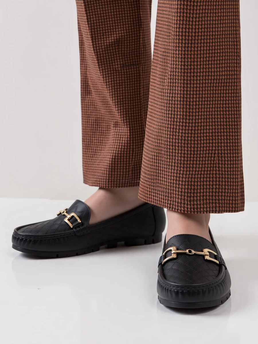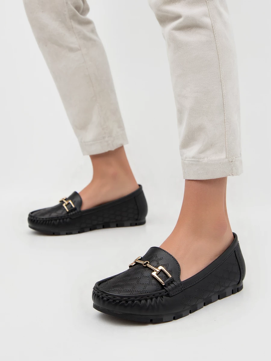 Damskie Mokasyny LIA BLACK – Ażurowy Wzór i Elegancki Akcent
