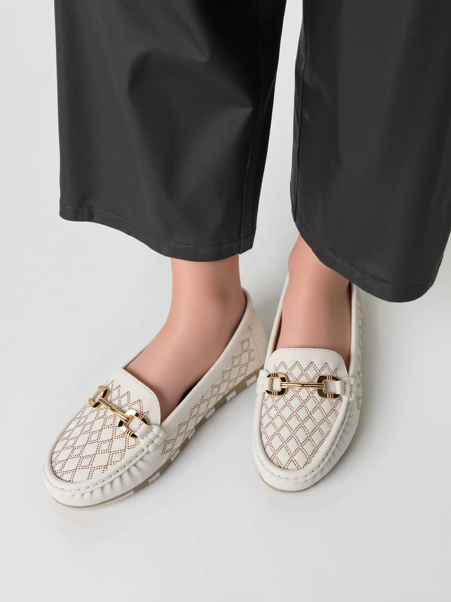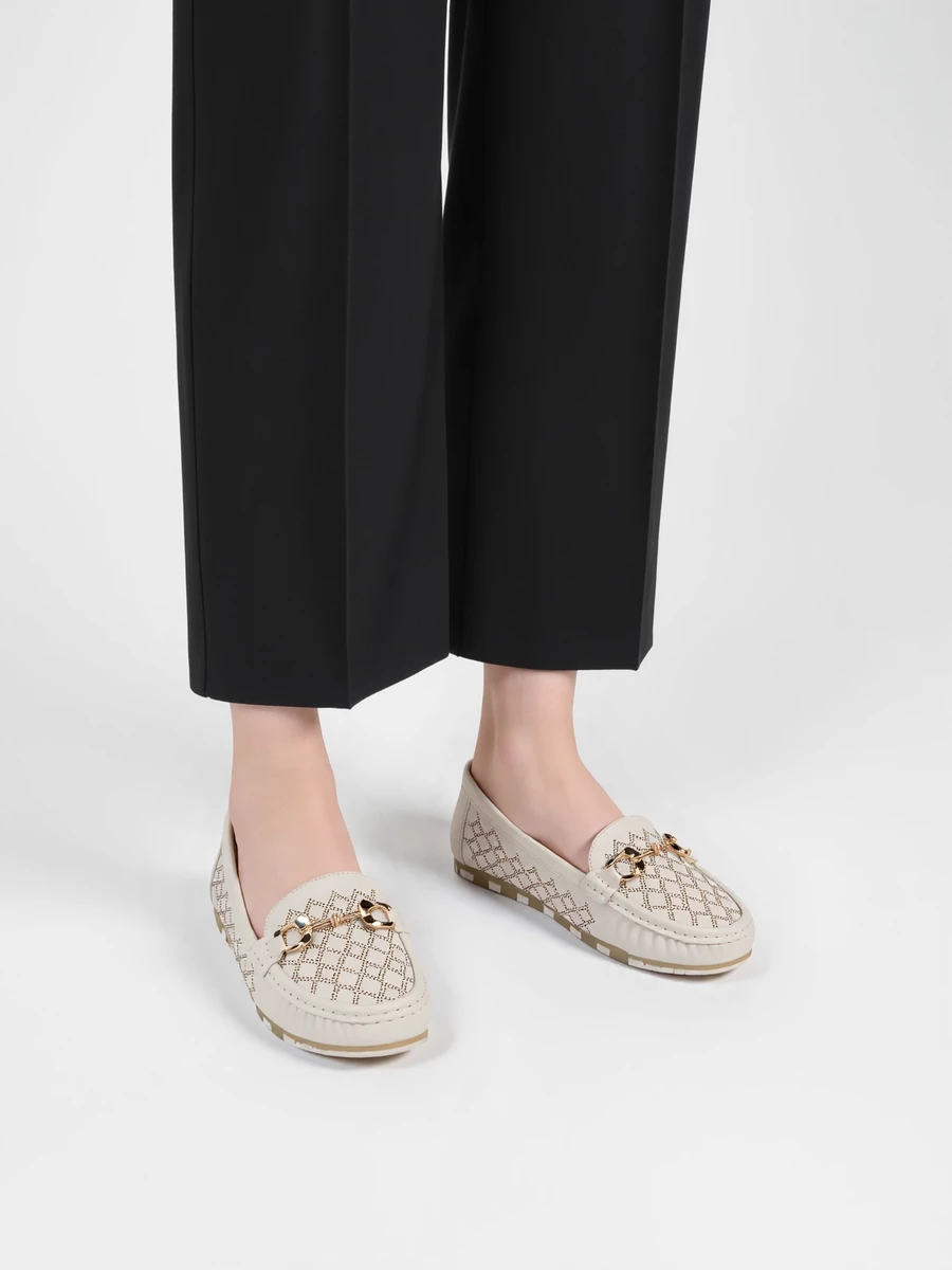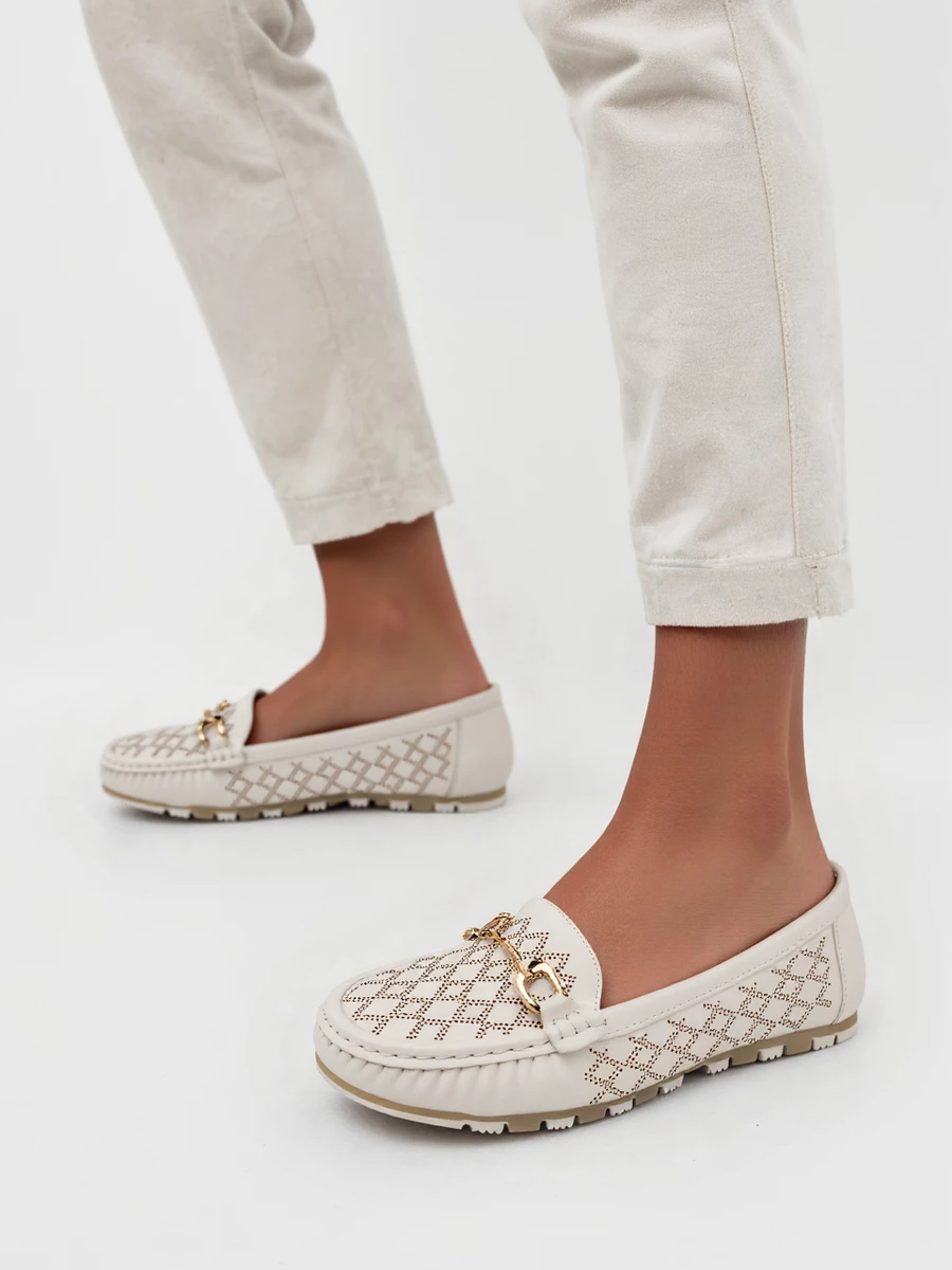 Damskie Mokasyny LIA WHITE – Ażurowy Wzór i Elegancki Akcent
