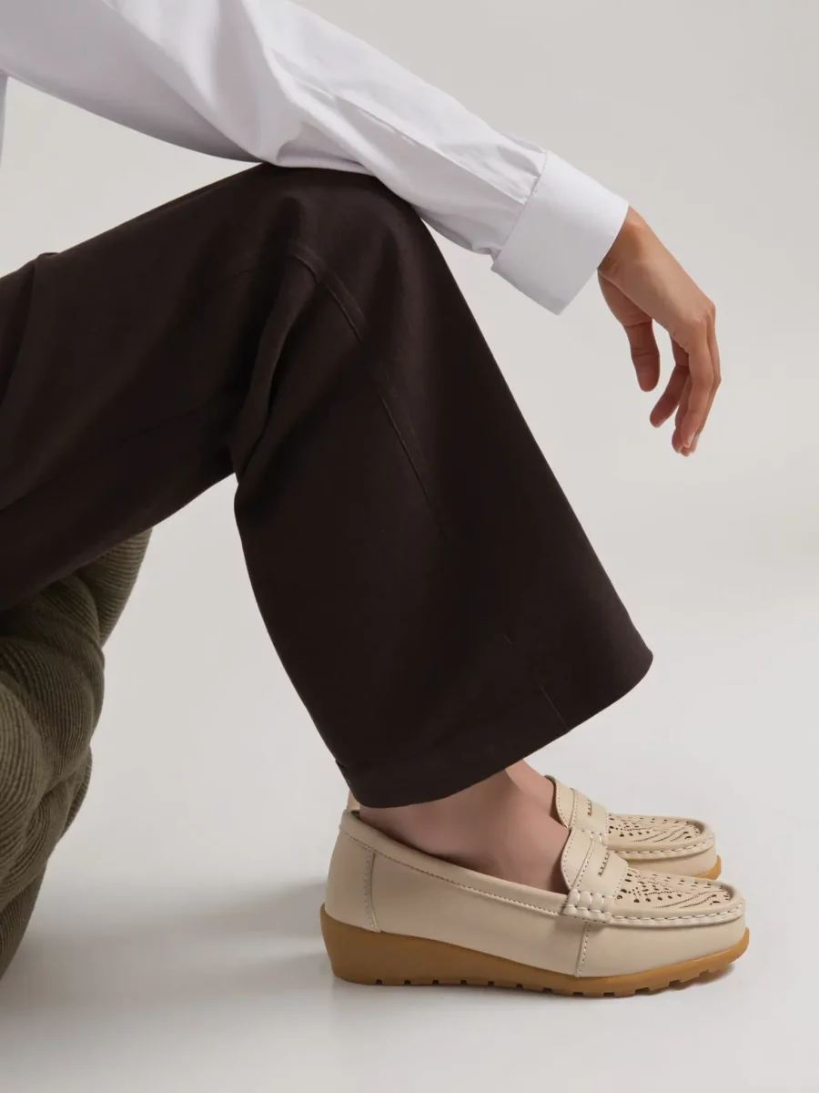 Damskie mokasyny SIENA APRICOT to idealne połączenie elegancji i komfortu. Ich klasyczny fason w odcieniu morelowym sprawia, że doskonale komponują się zarówno z codziennymi, jak i bardziej eleganckimi stylizacjami. Wykonane z wysokiej jakości materiałów, gwarantują wygodę na cały dzień. Podeszwa o ergonomicznym kształcie zapewnia stabilność, a delikatne perforacje dodają lekkości i przewiewności.
