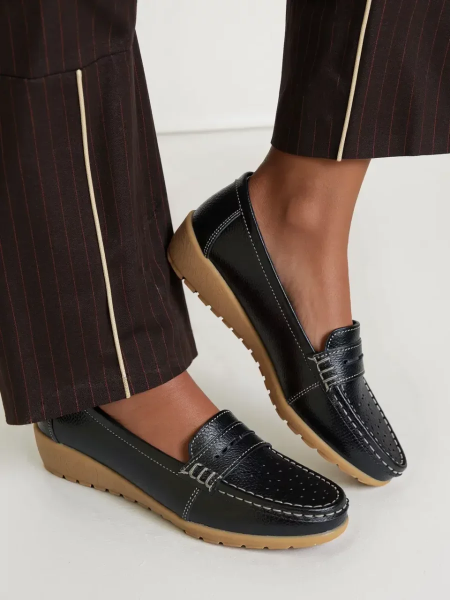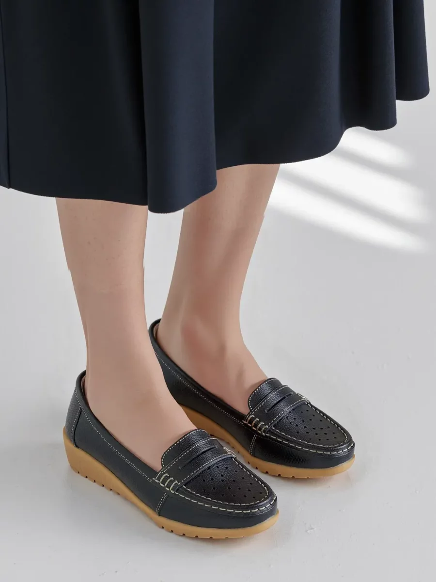Damskie mokasyny SIENA BLACK to stylowa i ponadczasowa propozycja dla kobiet ceniących wygodę oraz elegancję. Klasyczna, czarna kolorystyka sprawia, że pasują do każdej stylizacji – zarówno codziennej, jak i bardziej formalnej. Wykonane z wysokiej jakości ekoskóry, zapewniają komfort noszenia przez cały dzień. Ergonomiczna podeszwa gwarantuje stabilność, a subtelne perforacje nadają butom lekkości i przewiewności.