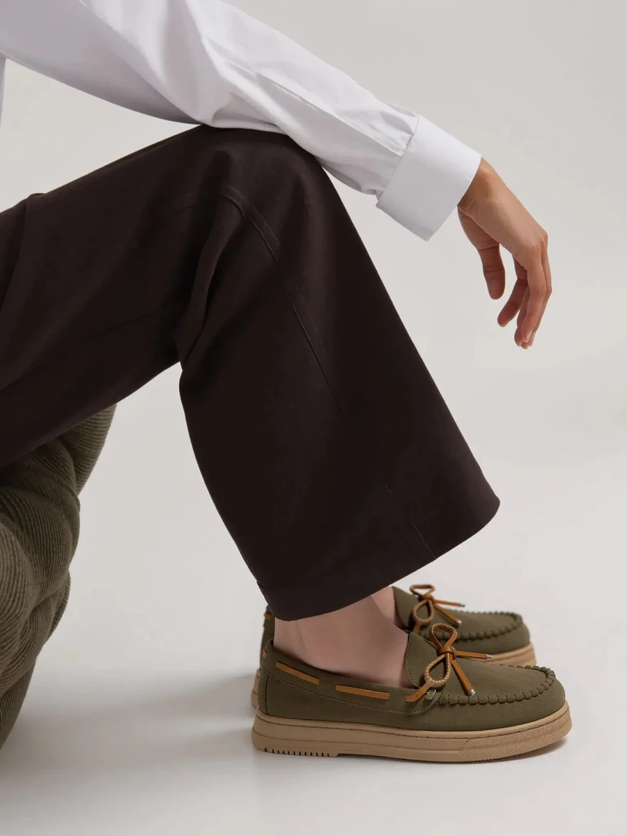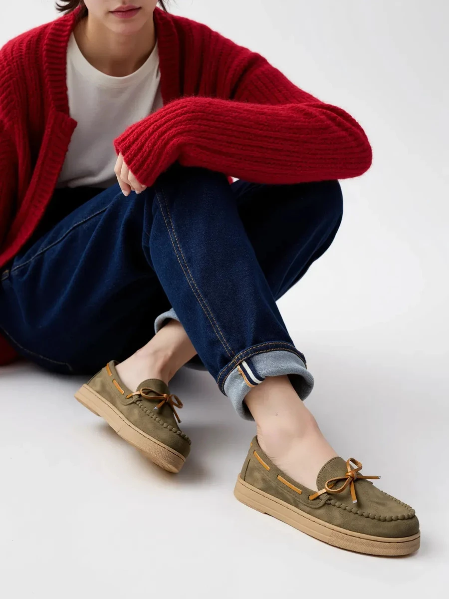 Mokasyny Lucia GREEN to doskonałe połączenie wygody i klasycznego stylu, które sprawdzi się w każdej garderobie. Wykonane z miękkiej zamszowej skóry ekologicznej, zapewniają wyjątkowy komfort noszenia i świetnie dopasowują się do stopy. Stylowe wiązanie w kontrastowym kolorze nadaje im subtelnej elegancji, a elastyczna, lekka podeszwa gwarantuje wygodę podczas codziennych aktywności. Idealne zarówno do casualowych stylizacji, jak i smart casual zestawów.
