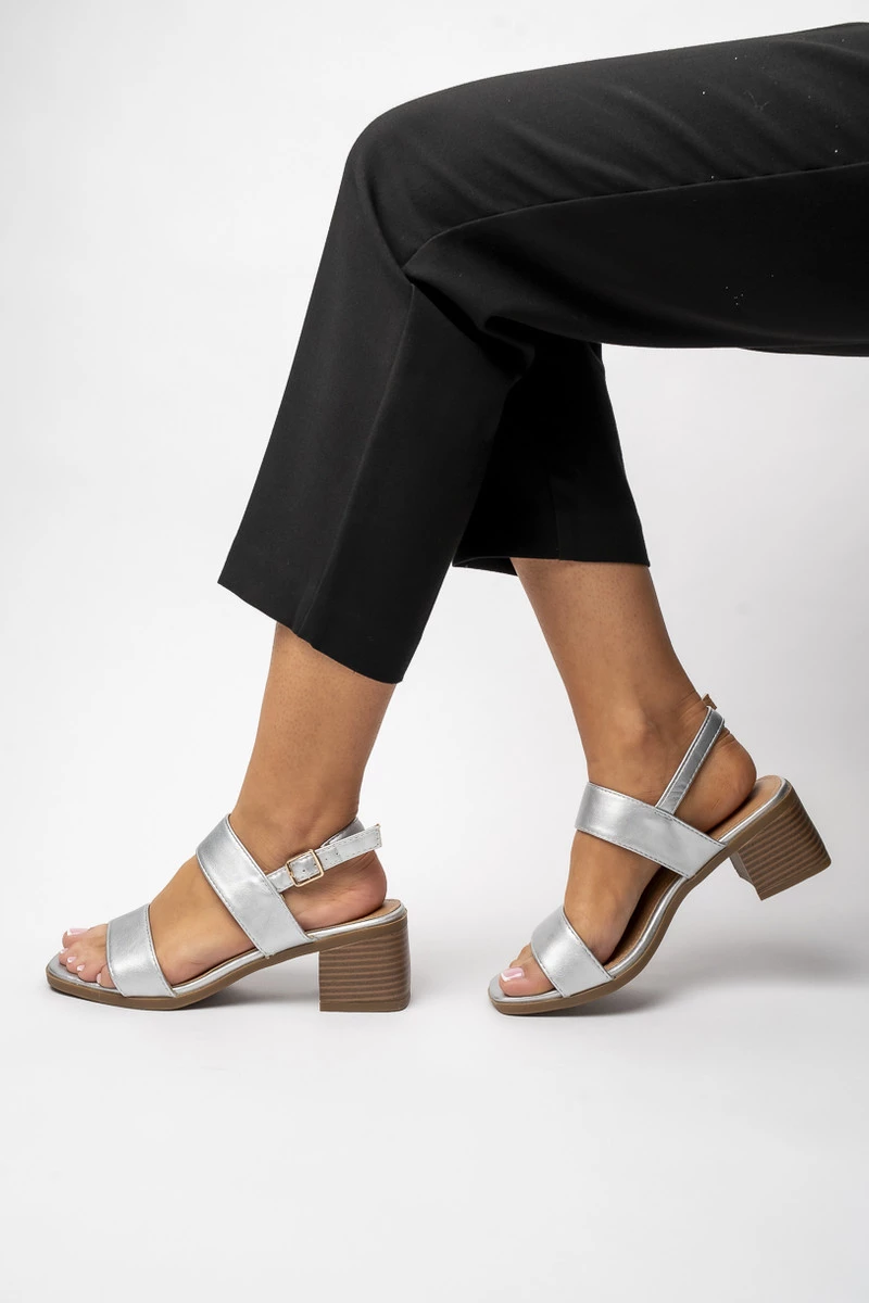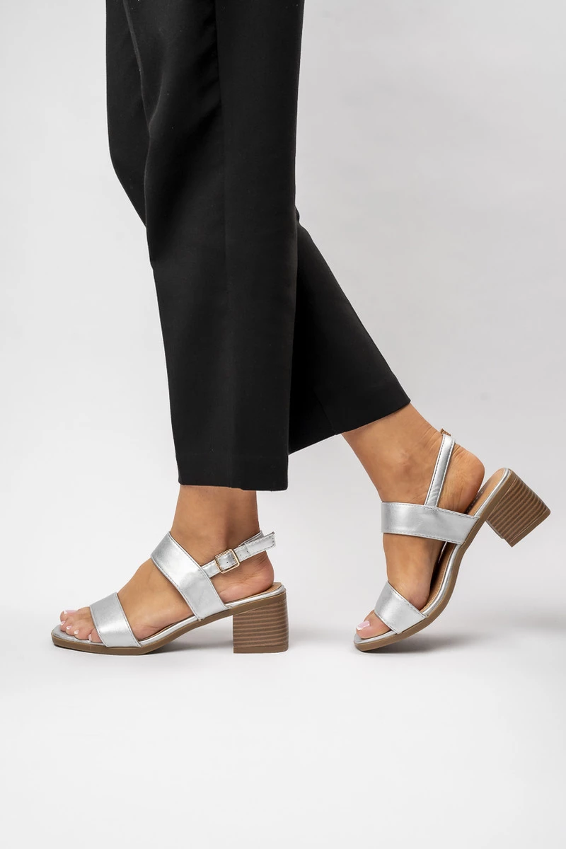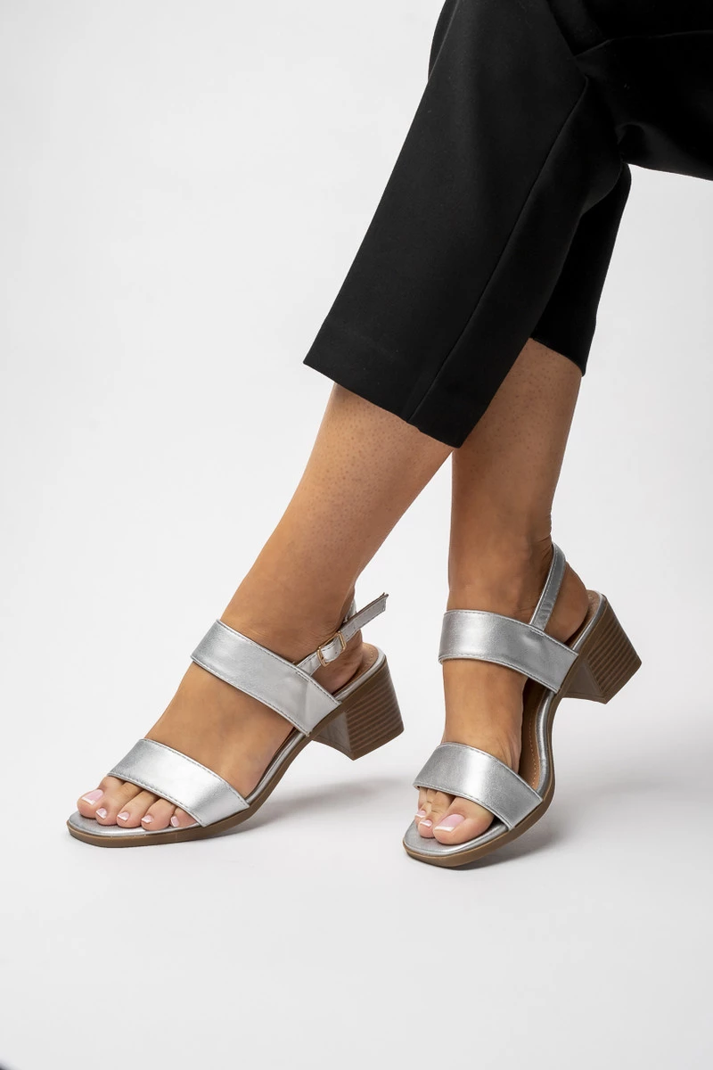 Damskie Sandały ALIA SILVER to połączenie wygody i elegancji w modnym, srebrnym odcieniu. Gładka cholewka wykonana z ekoskóry o metalicznym wykończeniu przyciąga wzrok i nadaje stylizacji lekkości. Szerokie paski stabilnie trzymają stopę, a niski, słupkowy obcas zapewnia komfort przez cały dzień. Regulowany pasek wokół pięty umożliwia idealne dopasowanie, dzięki czemu sandały sprawdzą się zarówno na co dzień, jak i na bardziej uroczyste okazje.