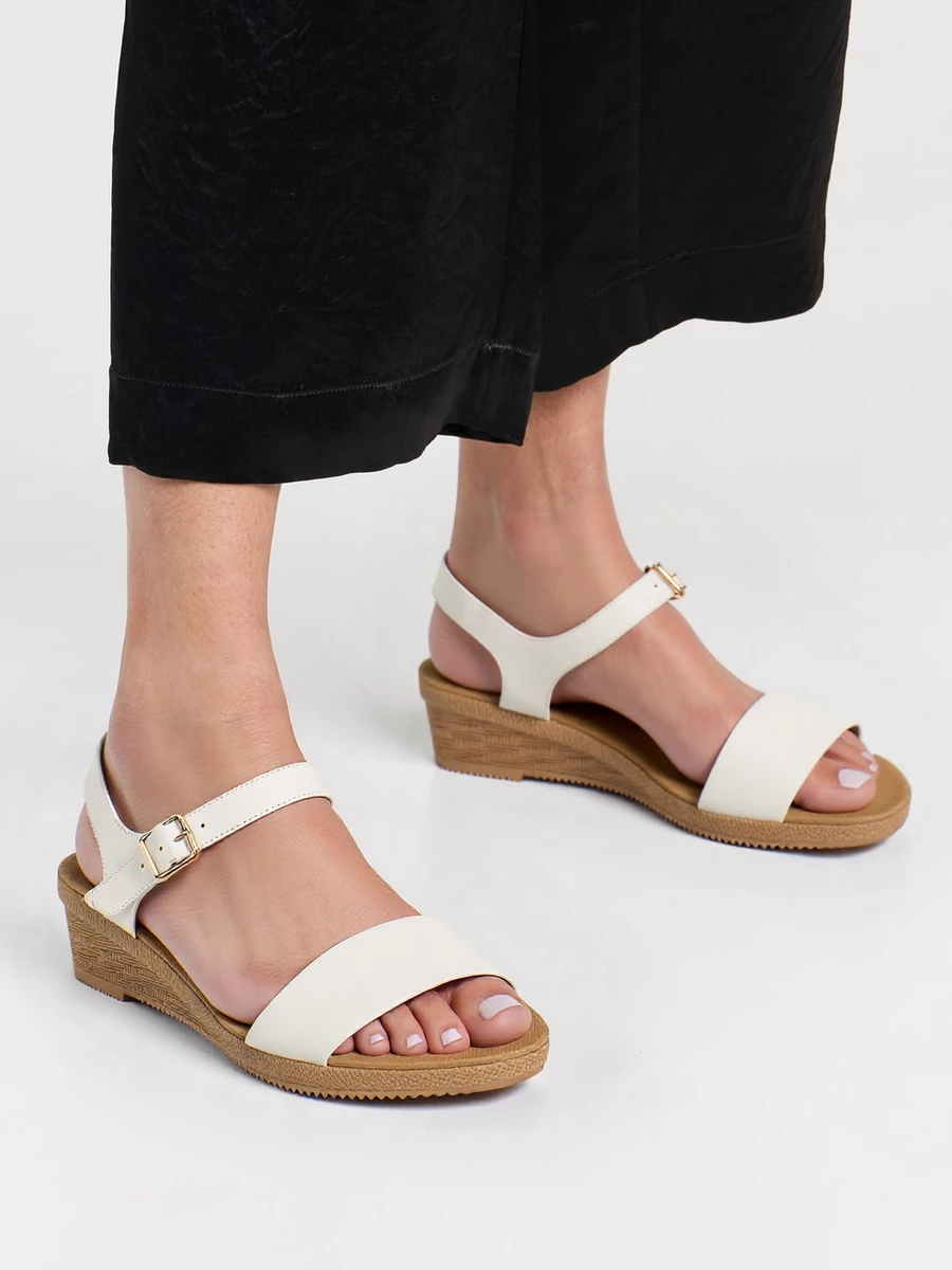 Sandały AURA w kolorze WHITE (białe) to elegancka i stylowa opcja na lato. Wykonane z wysokiej jakości materiałów, te sandały zapewniają wygodę dzięki regulowanemu paskowi na pięcie i subtelnemu paskowi na palcach. Modny design, klasyczny biały kolor i stabilna podeszwa sprawiają, że są doskonałe na wakacyjne wyjazdy, spacery i casualowe stylizacje.
