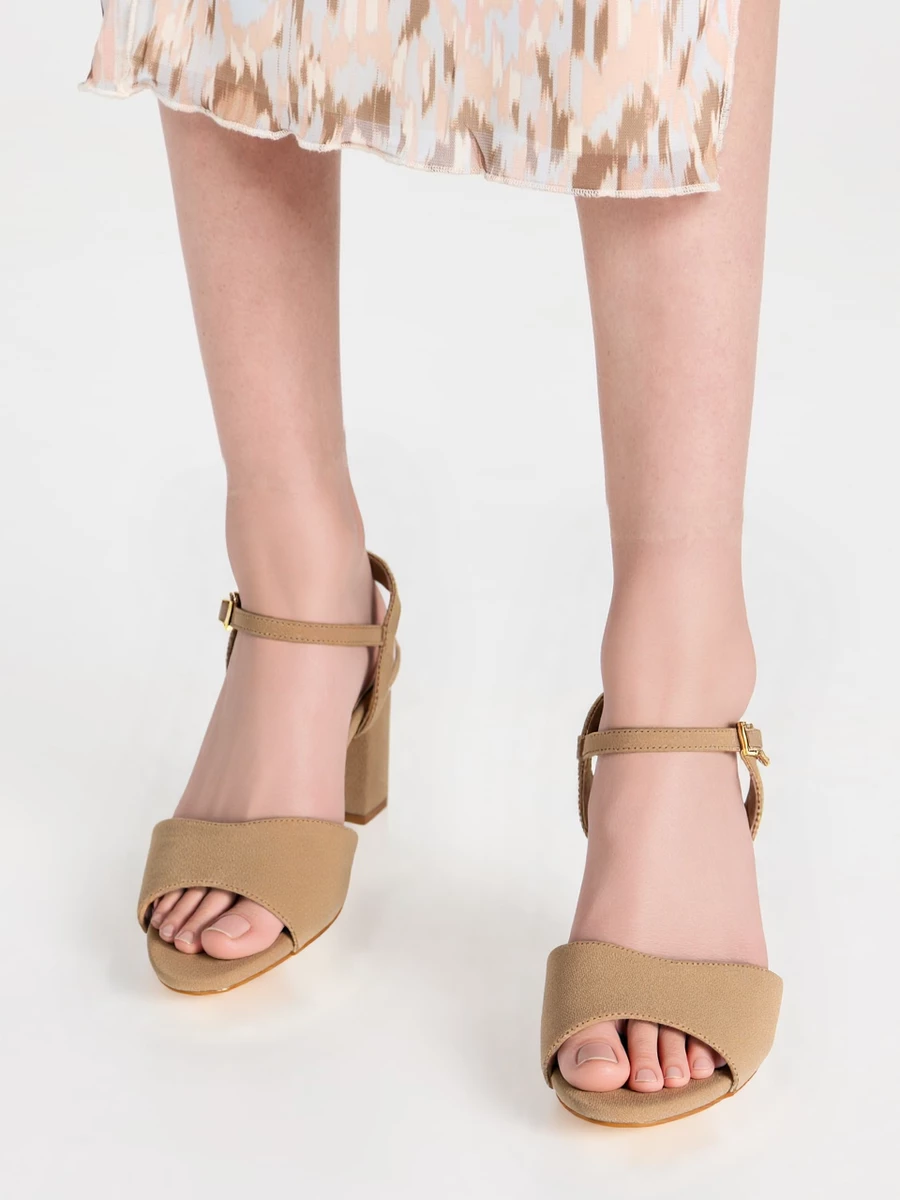 Damskie Sandały AURIA KHAKI to idealne rozwiązanie dla kobiet ceniących klasyczny styl i wygodę. Cholewka z gładkiego materiału w ciepłym, karmelowym odcieniu pięknie prezentuje się na stopie. Stabilny obcas typu słupek dodaje wysokości i elegancji, a pasek z regulowaną klamerką zapewnia idealne dopasowanie. To model, który sprawdzi się zarówno w codziennych stylizacjach, jak i podczas letnich uroczystości.