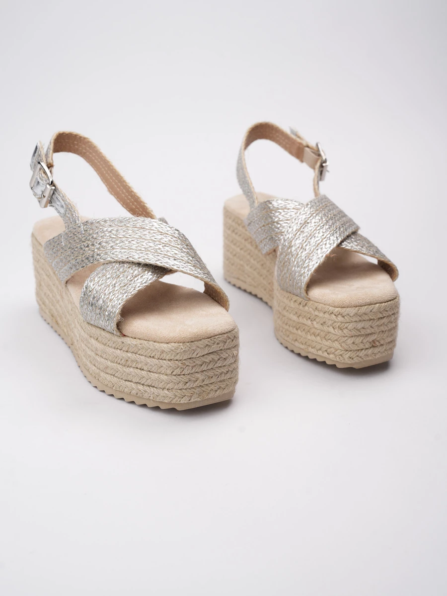 Damskie Sandały CASSIA SILVER to połączenie wakacyjnej swobody z nowoczesnym, metalicznym wykończeniem. Szerokie paski wykonane z połyskującego materiału tekstylnego krzyżują się efektownie na śródstopiu, zapewniając stabilność i stylowy wygląd. Pleciona platforma podkreśla letni charakter modelu, a regulowany pasek z klamerką pozwala na perfekcyjne dopasowanie. To idealne buty na lato – na spacer, urlop czy codzienne miejskie stylizacje z nutą blasku.