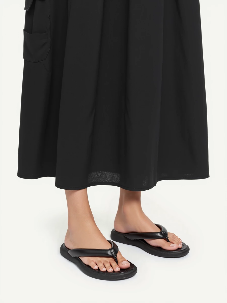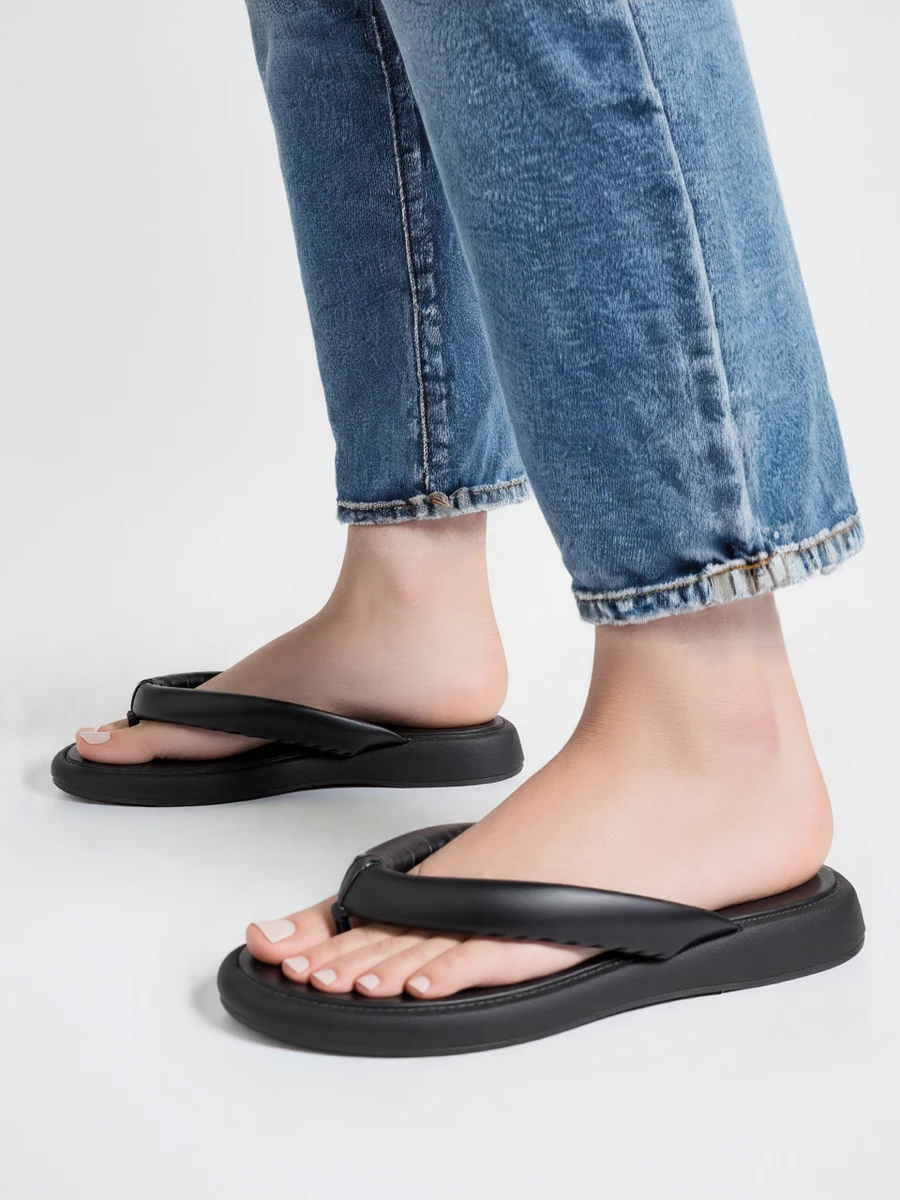 Damskie klapki MONA BLACK (czarne) to klasyczny wybór na ciepłe dni, które zapewnią komfort i elegancję. Miękkie, zgrabne paski z dekoracyjnym wykończeniem i stylową aplikacją w postaci ozdobnych elementów sprawiają, że klapki te doskonale komponują się z letnimi stylizacjami. Idealne do codziennego użytku, doskonałe na spacer po plaży czy spotkanie ze znajomymi.