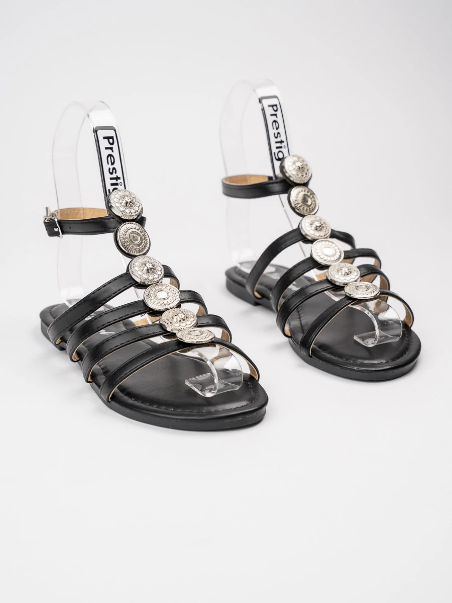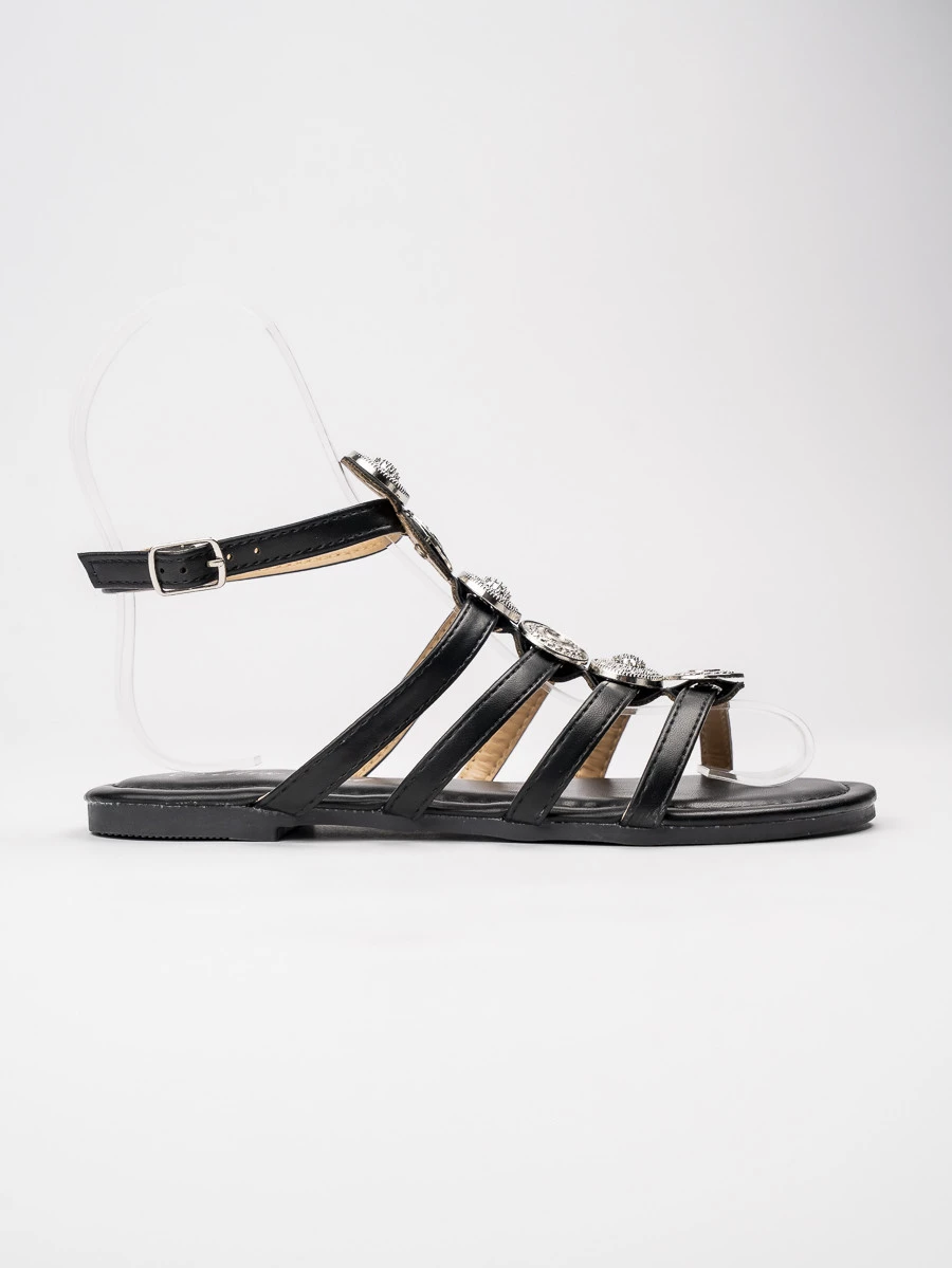 Damskie Sandały NOELLE BLACK to propozycja dla kobiet, które lubią łączyć wygodę z efektownym wyglądem. Klasyczna, czarna cholewka z cienkimi paskami została ozdobiona rzędem biżuteryjnych cyrkonii, które pięknie połyskują w słońcu. Stabilne zapięcie na kostce i płaska podeszwa gwarantują komfort nawet przy dłuższym noszeniu. Idealne na wakacje, do sukienki, kombinezonu czy szortów – kiedy chcesz wyglądać stylowo, ale czuć się swobodnie.
