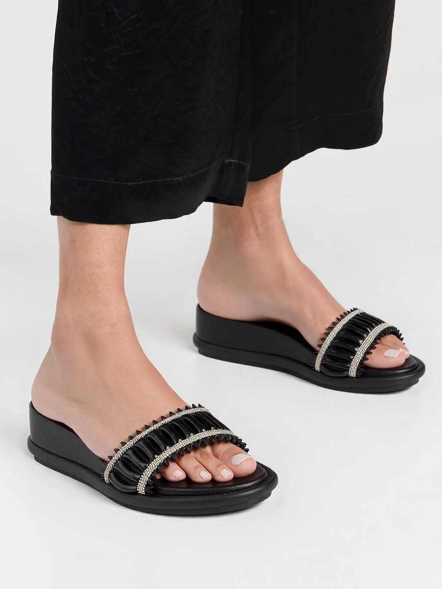 Sandały SANDY BLACK (czarne) to połączenie elegancji z codzienną wygodą. Cholewka z plecionego materiału i ozdobna taśma z kryształkami tworzą wyjątkowy wygląd, idealny do letnich stylizacji. Doskonałe zarówno na spotkania towarzyskie, jak i casualowe wyjścia.