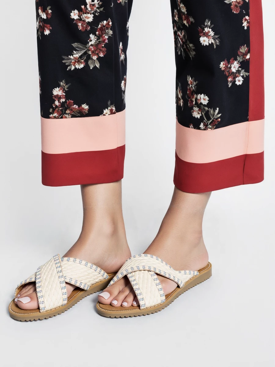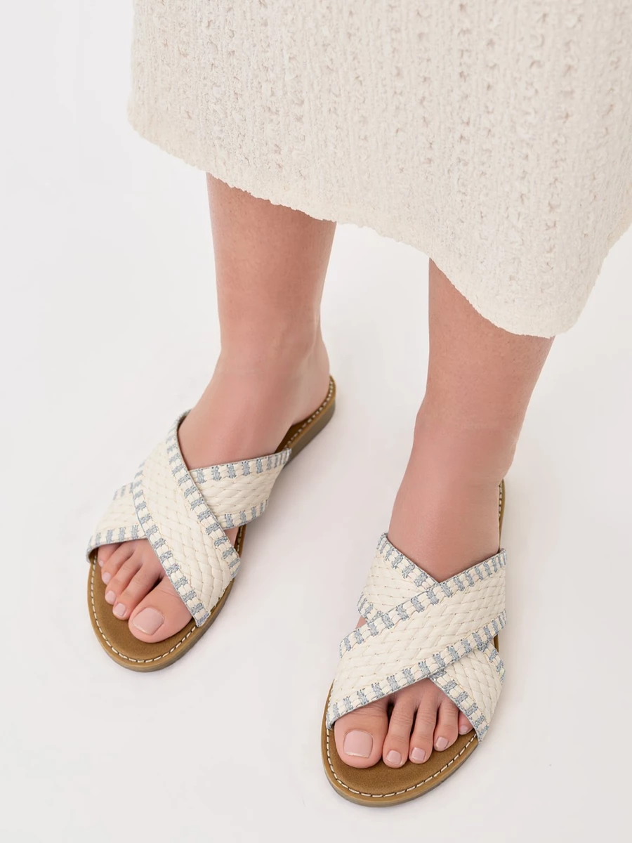 Klapki WAVE w kolorze białym to definicja wakacyjnej elegancji w swobodnym stylu. Plecione paski w odcieniu śmietankowej bieli dodają lekkości i świeżości każdej letniej stylizacji, a miękka wkładka zadba o komfort nawet podczas najdłuższych spacerów.