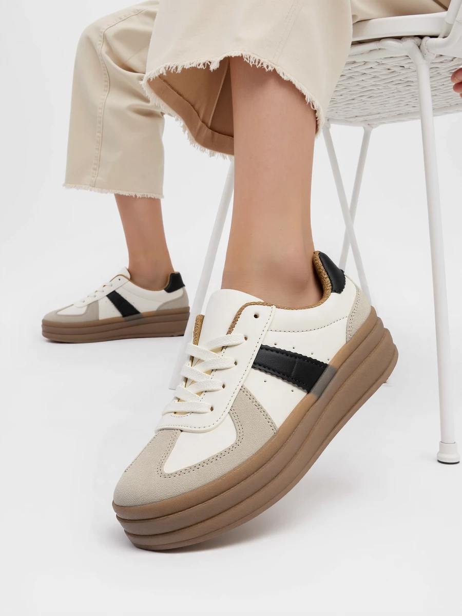 Damskie Sneakersy ALMA BEIGE – Subtelna Platforma i Kontrastowe Akcenty