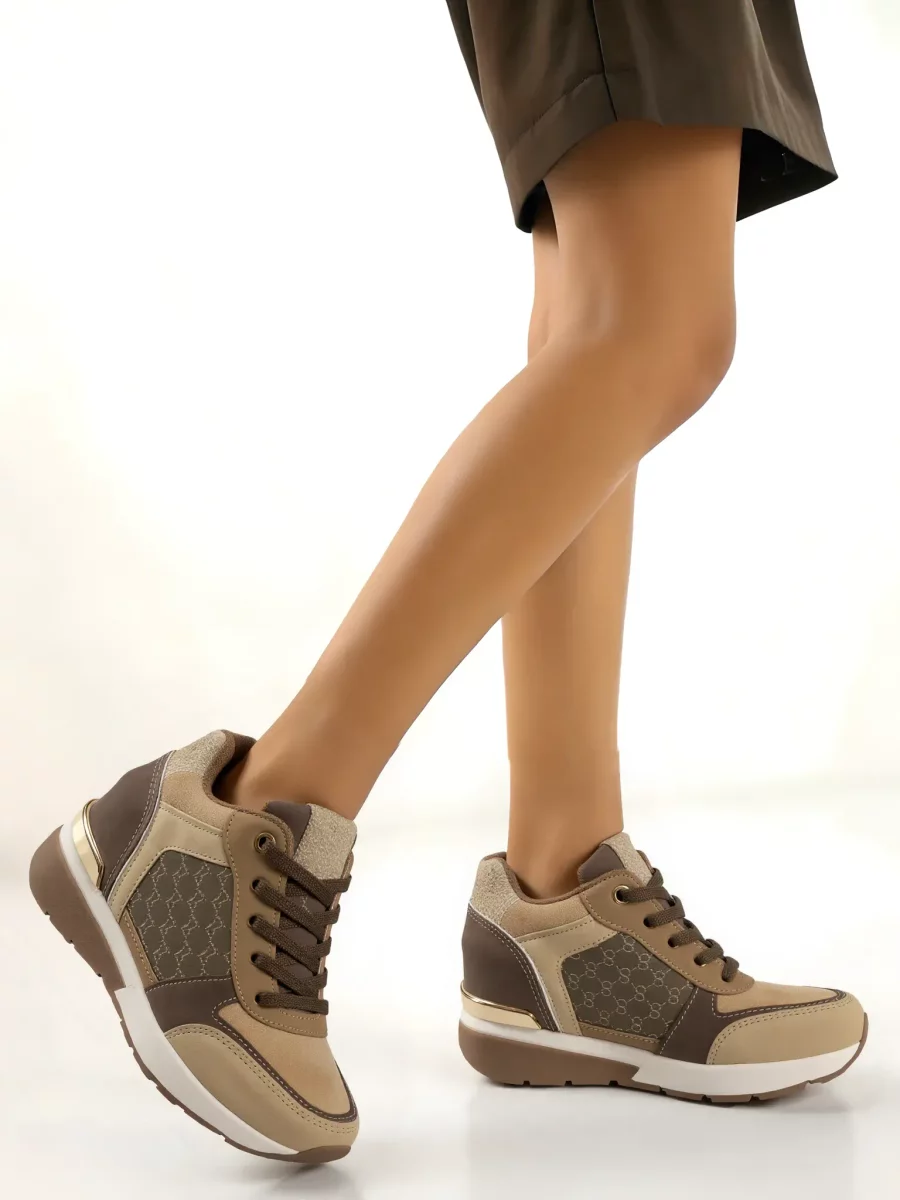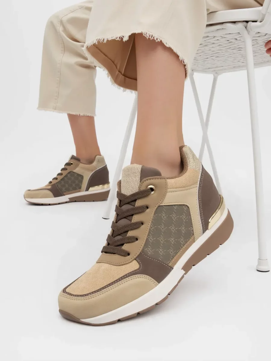 Eleganckie i wygodne damskie sneakersy w odcieniach khaki to idealne połączenie stylu i komfortu. Dzięki modnemu designowi oraz wysokiej jakości wykonania doskonale sprawdzą się na co dzień, zapewniając wygodę przez cały dzień. Subtelne złote detale dodają im wyjątkowego charakteru, a solidna podeszwa gwarantuje stabilność i wygodę.