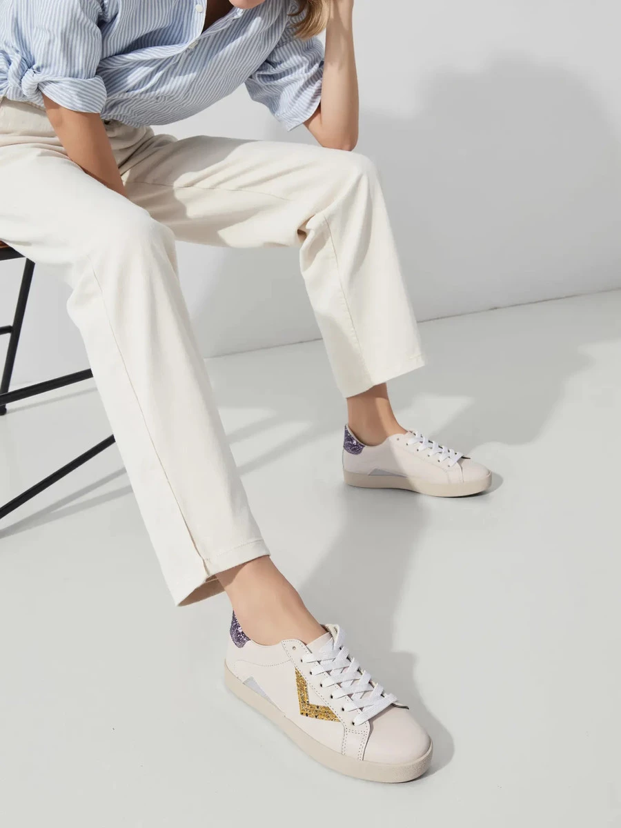 Damskie Sneakersy – Białe, Brokatowe Wstawki Sienna GOLD