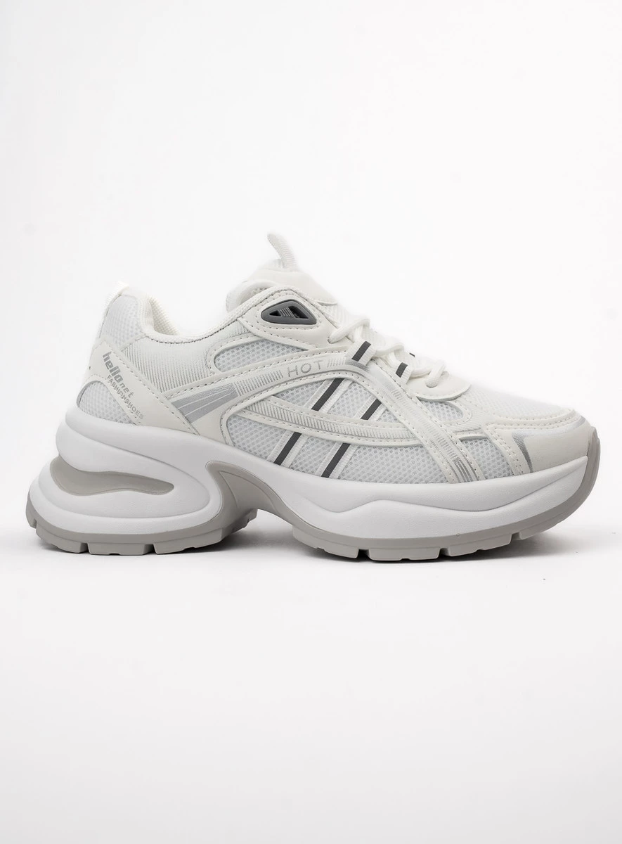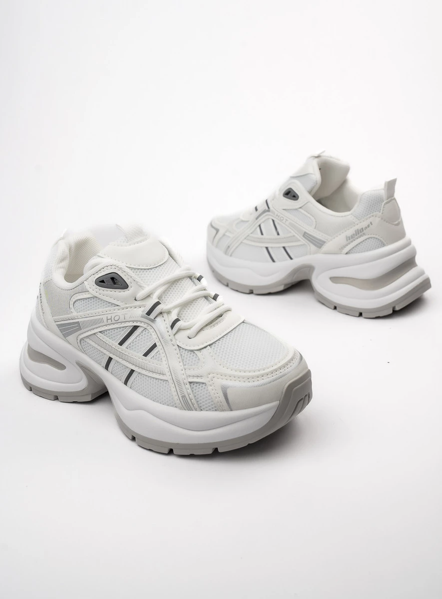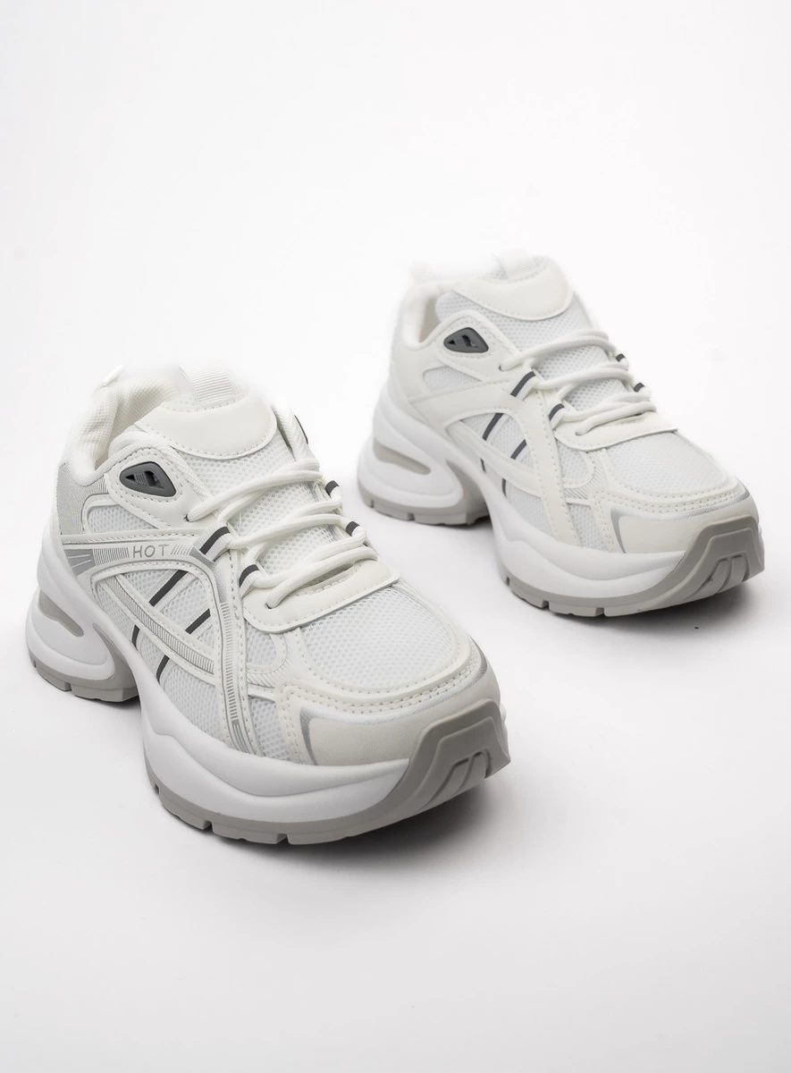 Sneakersy DAKOTA WHITE to połączenie klasycznej bieli z nowoczesnym designem. Wykonane z wysokiej jakości skóry ekologicznej i przewiewnej siateczki, zapewniają lekkość i wygodę przez cały dzień. Ich gruba, amortyzująca podeszwa sprawia, że świetnie sprawdzają się zarówno na co dzień, jak i podczas aktywności na świeżym powietrzu.