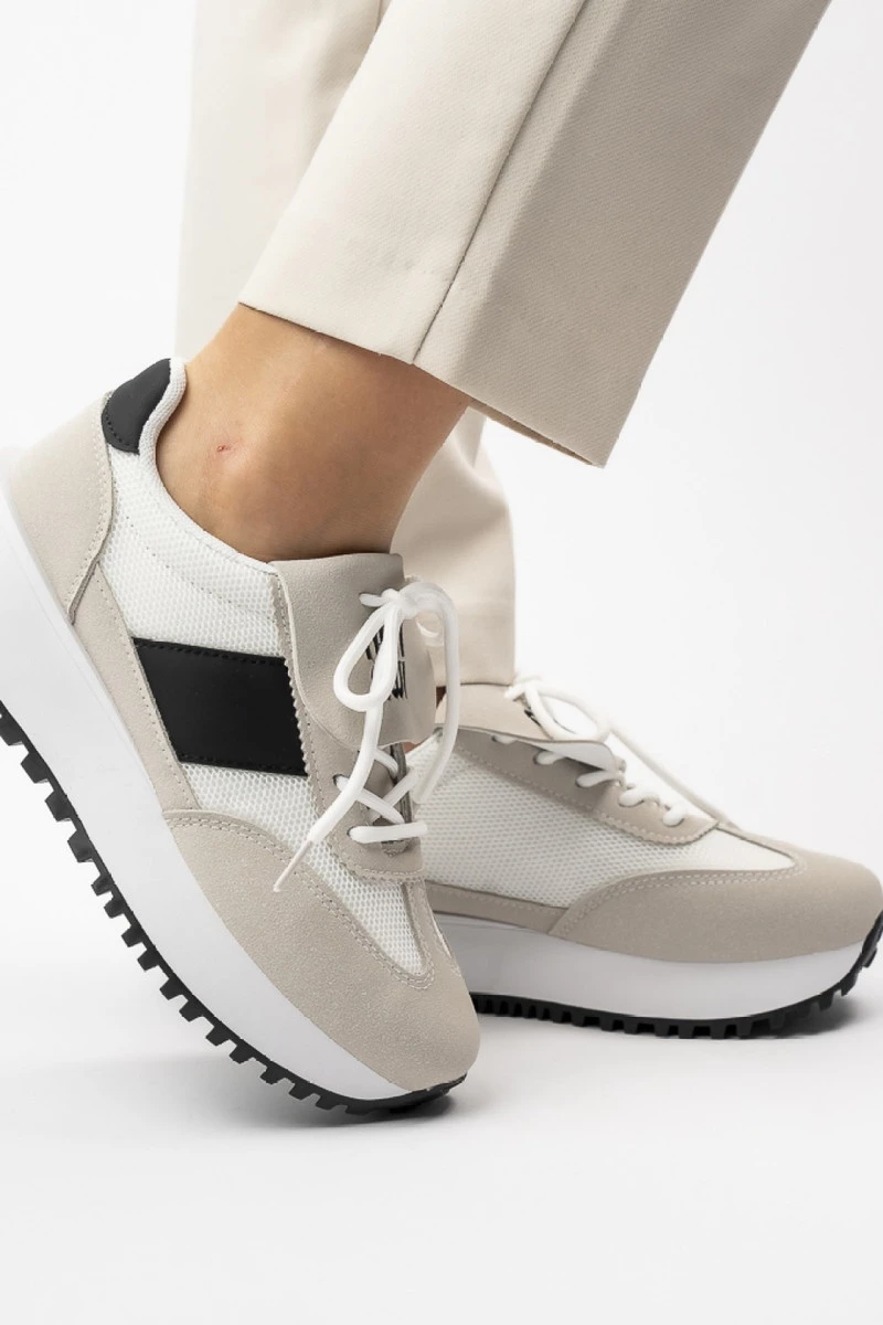 Te sneakersy to kwintesencja miejskiego luzu z kobiecym wyczuciem stylu. Subtelne połączenie beżu, bieli i czerni sprawia, że pasują dosłownie do wszystkiego — od minimalistycznych outfitów po sportowe stylizacje z twistem. Ich oddychająca cholewka i lekka platforma gwarantują komfort na każdym kroku, a nowoczesne linie dodają charakteru nawet najprostszej stylizacji.