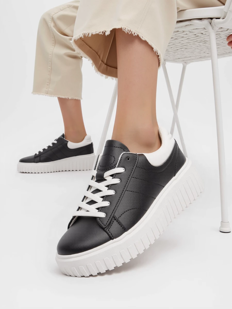 Sneakersy HERA w kolorze BLACK (czarne) to stylowy i uniwersalny model, który łączy klasyczny wygląd z nowoczesnym designem. Wykonane z wysokiej jakości skóry syntetycznej, z białymi akcentami na podeszwie oraz sznurówkach, co nadaje im wyjątkowego charakteru. Gruba, teksturowana podeszwa zapewnia komfort i stabilność na każdym kroku. Te sneakersy to doskonały wybór do codziennych stylizacji, na spacer, oraz na casualowe wyjścia.