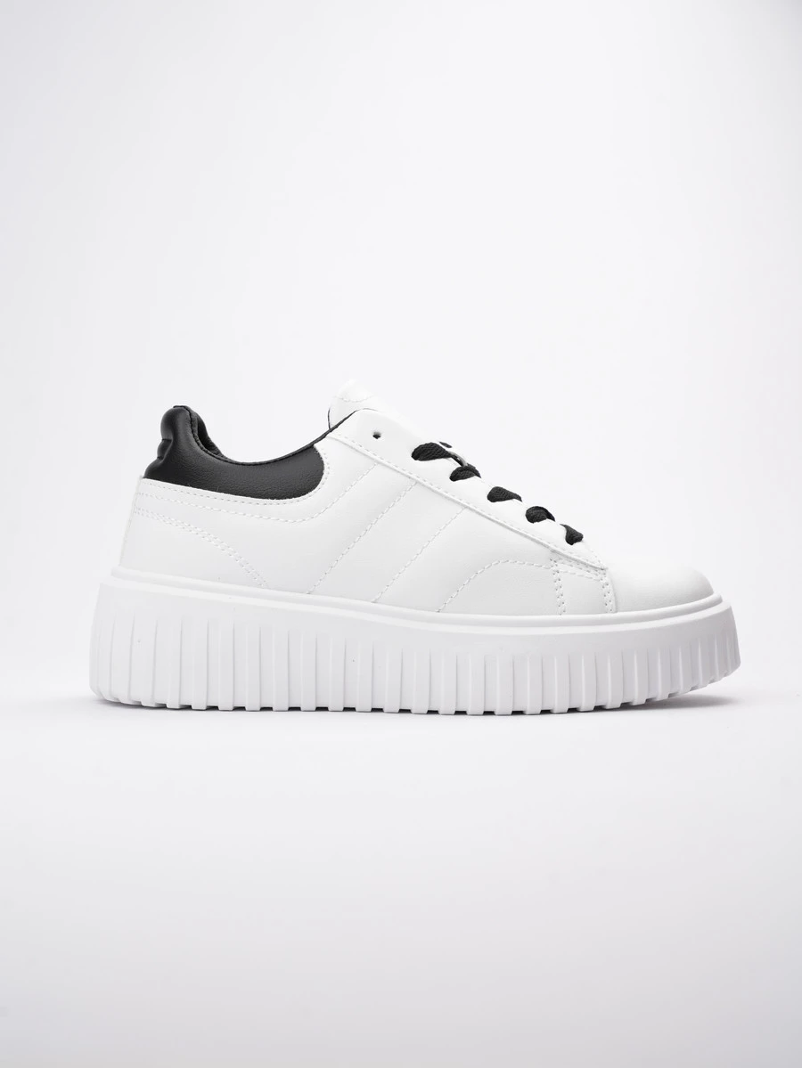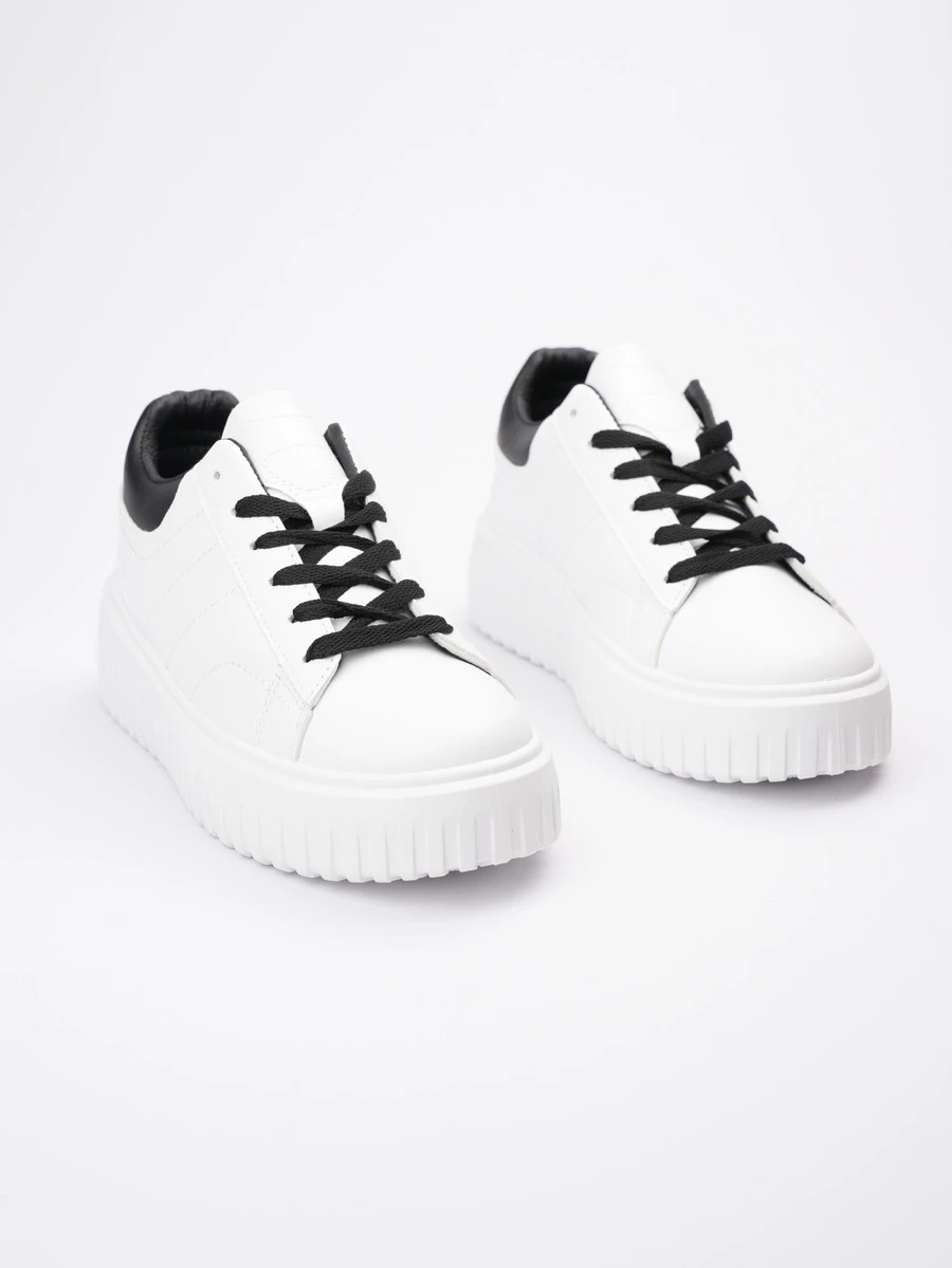 Sneakersy HERA w kolorze WHITE/BLACK to połączenie klasyki z nowoczesnym stylem. Wykonane z białej skóry syntetycznej z akcentami w kolorze czarnym na zapiętku oraz sznurówkach, które nadają butom wyjątkowego charakteru. Gruba, teksturowana podeszwa zapewnia komfort przez cały dzień, a ich uniwersalny design sprawia, że będą doskonałym wyborem do casualowych stylizacji na co dzień.