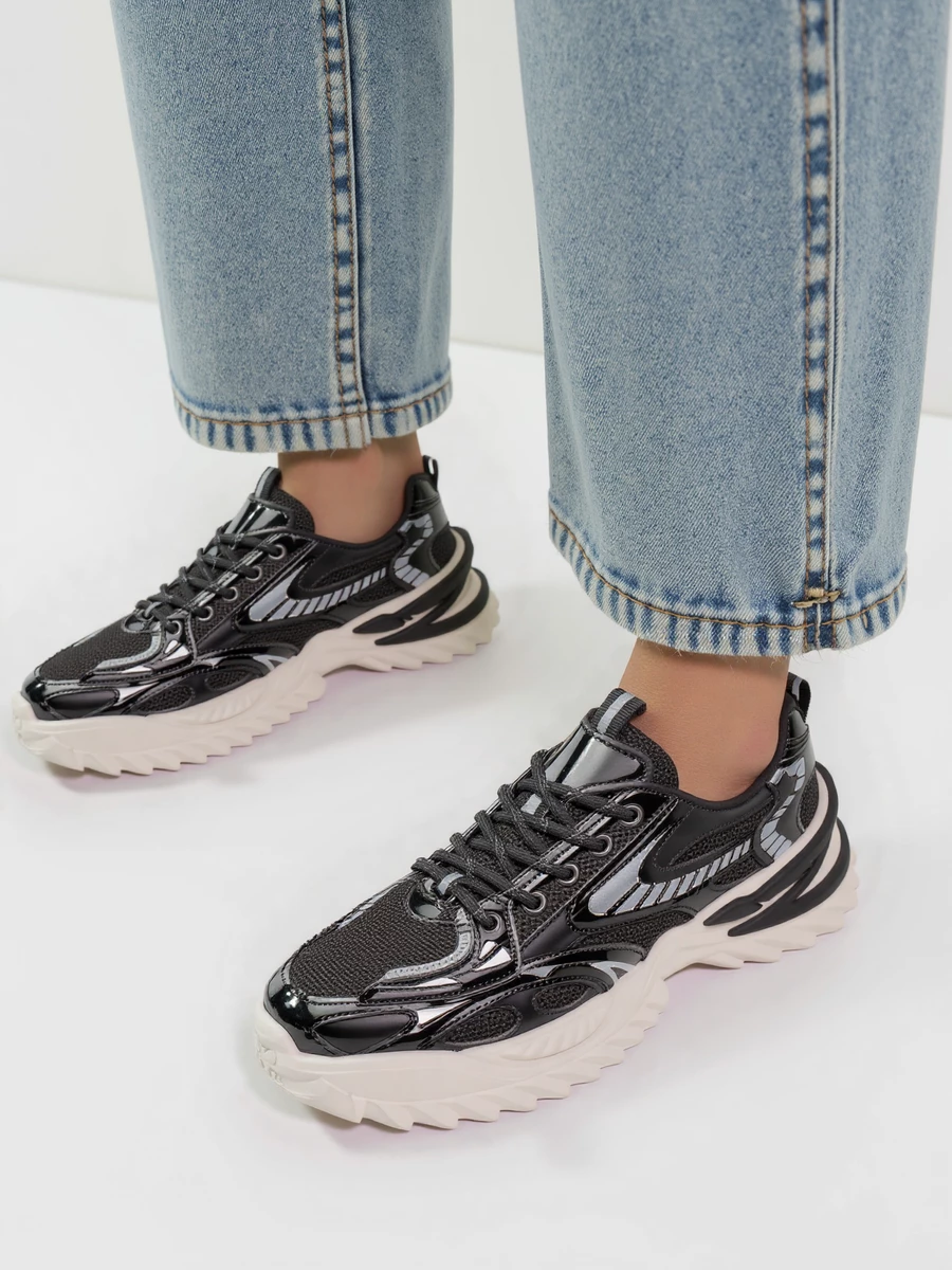 Sneakersy JAYDEN BLACK to dynamiczne połączenie sportowego designu z futurystycznymi detalami. Ich lśniąca czarna cholewka wykonana z siateczki i skóry ekologicznej zapewnia przewiewność i wyjątkowy wygląd. Kontrastowa, masywna podeszwa dodaje charakteru i zapewnia wygodę na co dzień.