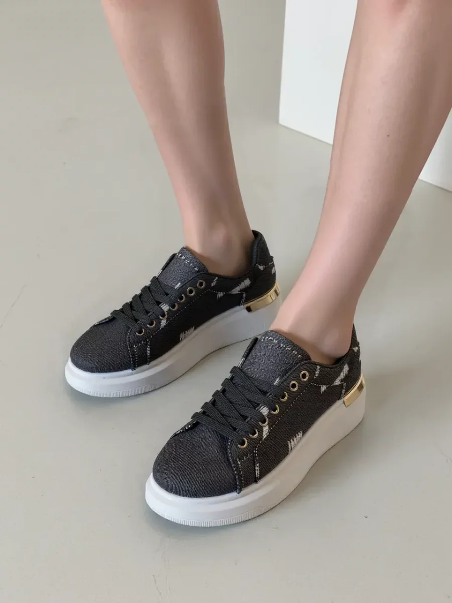 LOREN BLACK to połączenie klasycznej elegancji z nowoczesnym sportowym designem. Stylowa czerń uzupełniona złotymi detalami sprawia, że buty te doskonale pasują do codziennych i streetwearowych stylizacji. Solidna podeszwa zapewnia komfort, a detale w postaci złotych oczek dodają luksusowego akcentu.