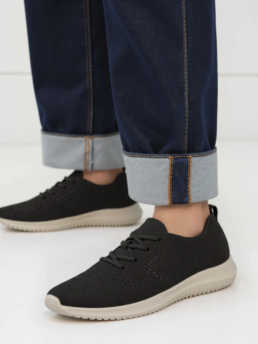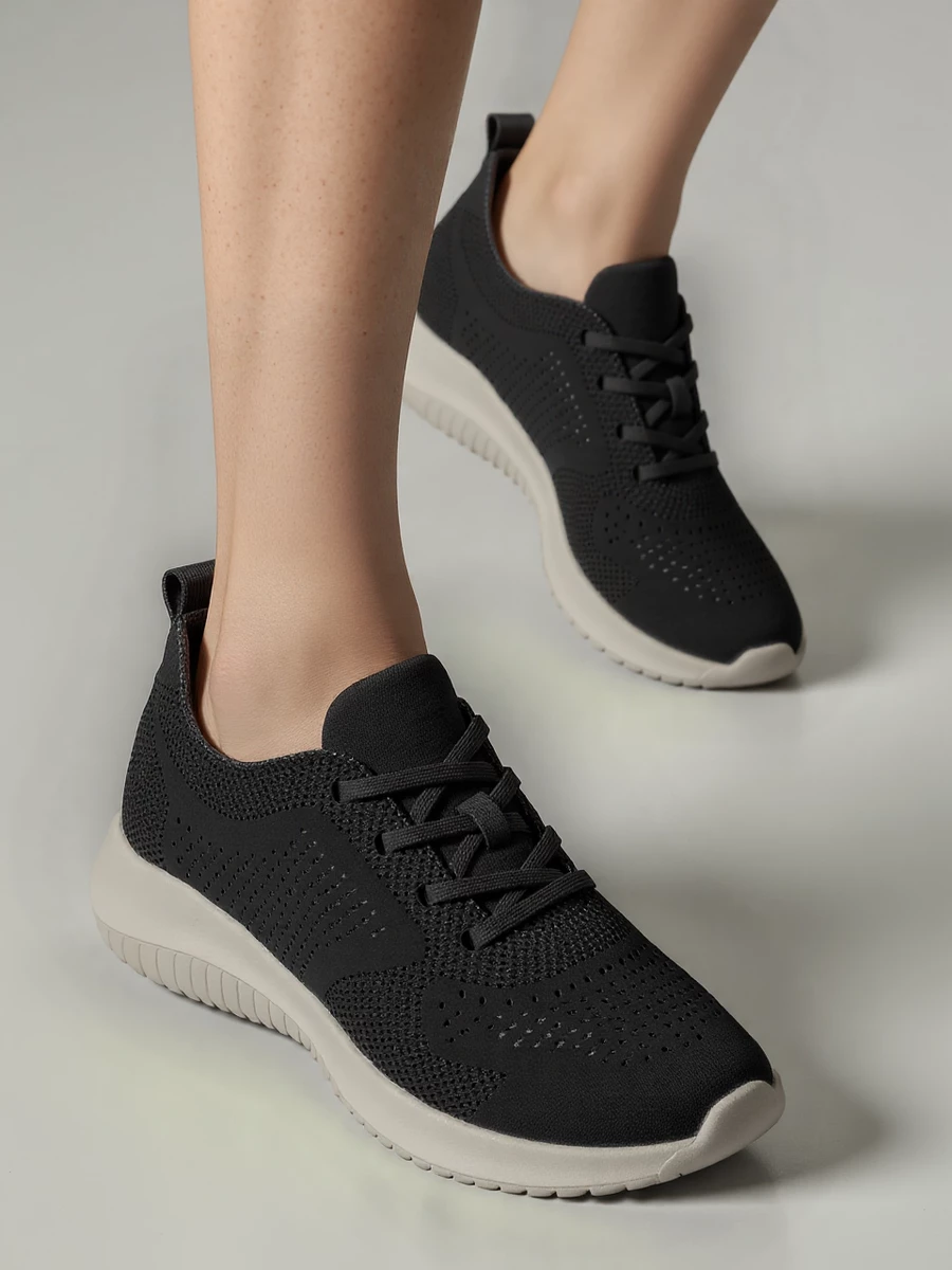 Damskie Sneakersy NORA BLACK to propozycja dla kobiet ceniących sobie komfort i uniwersalny styl. Cholewka wykonana z przewiewnego materiału tekstylnego zapewnia doskonałą wentylację, a lekka podeszwa dba o wygodę podczas długich spacerów czy aktywności na co dzień. Klasyczna, czarno-biała kolorystyka sprawia, że buty łatwo dopasować do wielu stylizacji, od sportowych po casualowe.