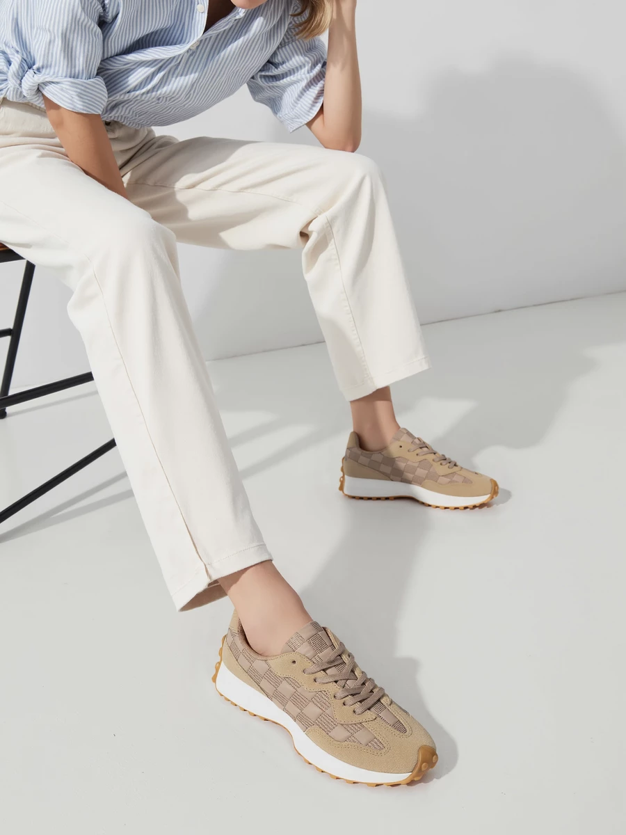 Sneakersy RENVOX w eleganckim beżowym kolorze to połączenie sportowego stylu i nowoczesnego designu. Wykonane z połączenia zamszu ekologicznego i tkaniny, oferują wyjątkową trwałość i komfort noszenia. Wyprofilowana podeszwa z antypoślizgowym wykończeniem zapewnia stabilność, a teksturowane elementy dodają im charakteru. Idealne do casualowych i sportowych stylizacji.