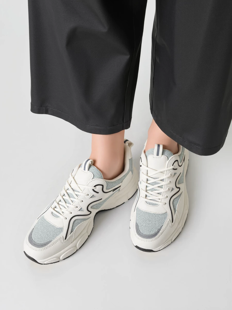 STELLAR Light Green to nowoczesne sneakersy o dynamicznym designie, łączące pastelową zieleń z bielą i kontrastowymi czarnymi detalami. Zaprojektowane z myślą o aktywnych kobietach ceniących wygodę i sportowy styl.