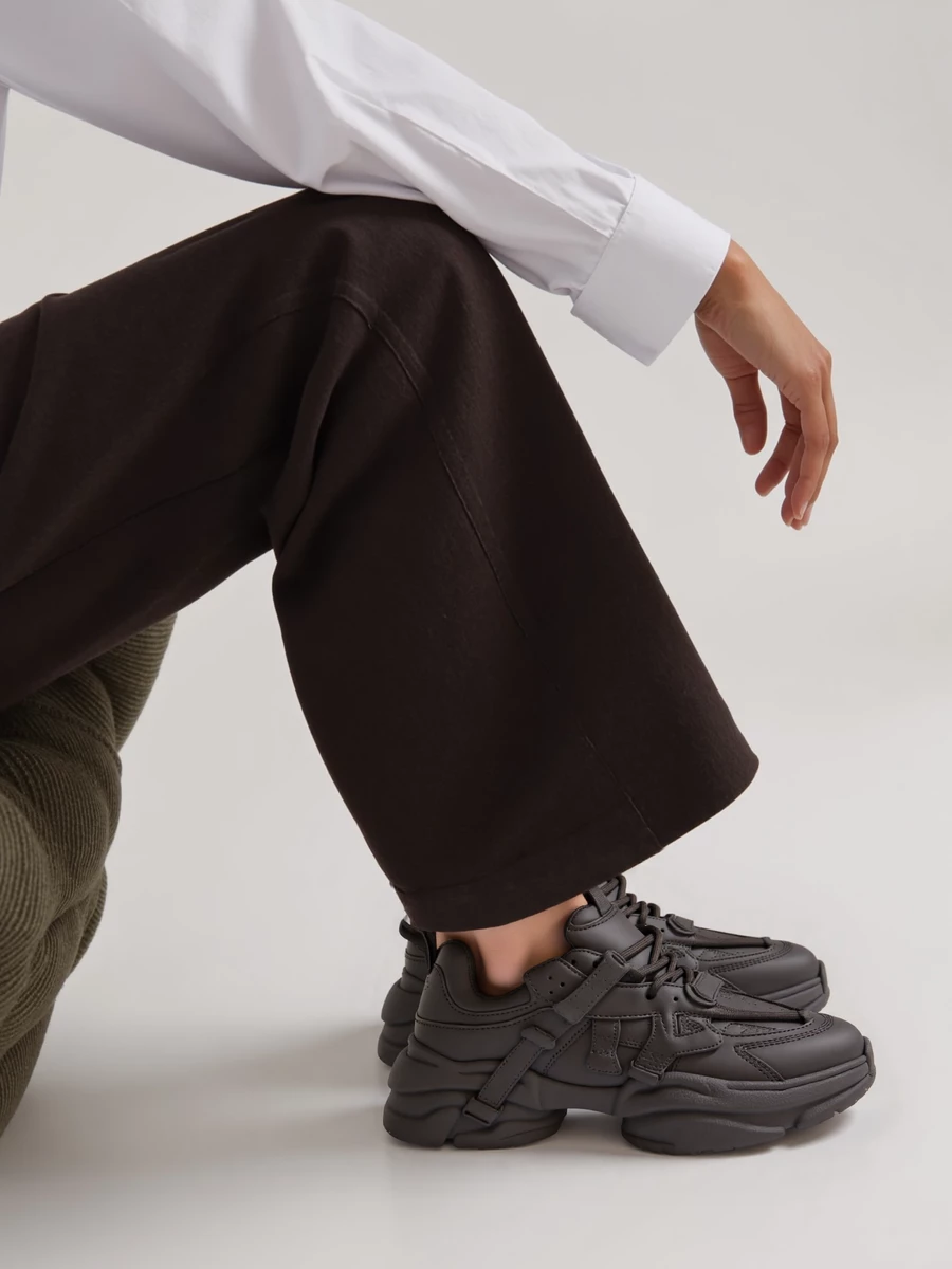 TITAN Black to futurystyczne sneakersy na masywnej platformie, które łączą minimalistyczny styl z nowoczesnym designem. Monochromatyczna, czarna kolorystyka oraz unikalne paski i detale nadają im wyjątkowego charakteru. Ich solidna konstrukcja sprawia, że są idealnym wyborem zarówno na co dzień, jak i do streetwearowych stylizacji.