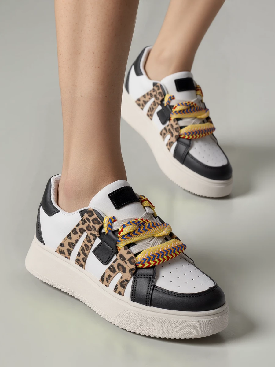 Nowoczesne damskie sneakersy WEAVEX WH/BLACK łączą klasyczne odcienie czerni i bieli z wyjątkowymi, tkanymi akcentami i wykończeniem z zamszu. Idealne dla osób poszukujących butów, które połączą komfort z unikalnym stylem i elegancją.