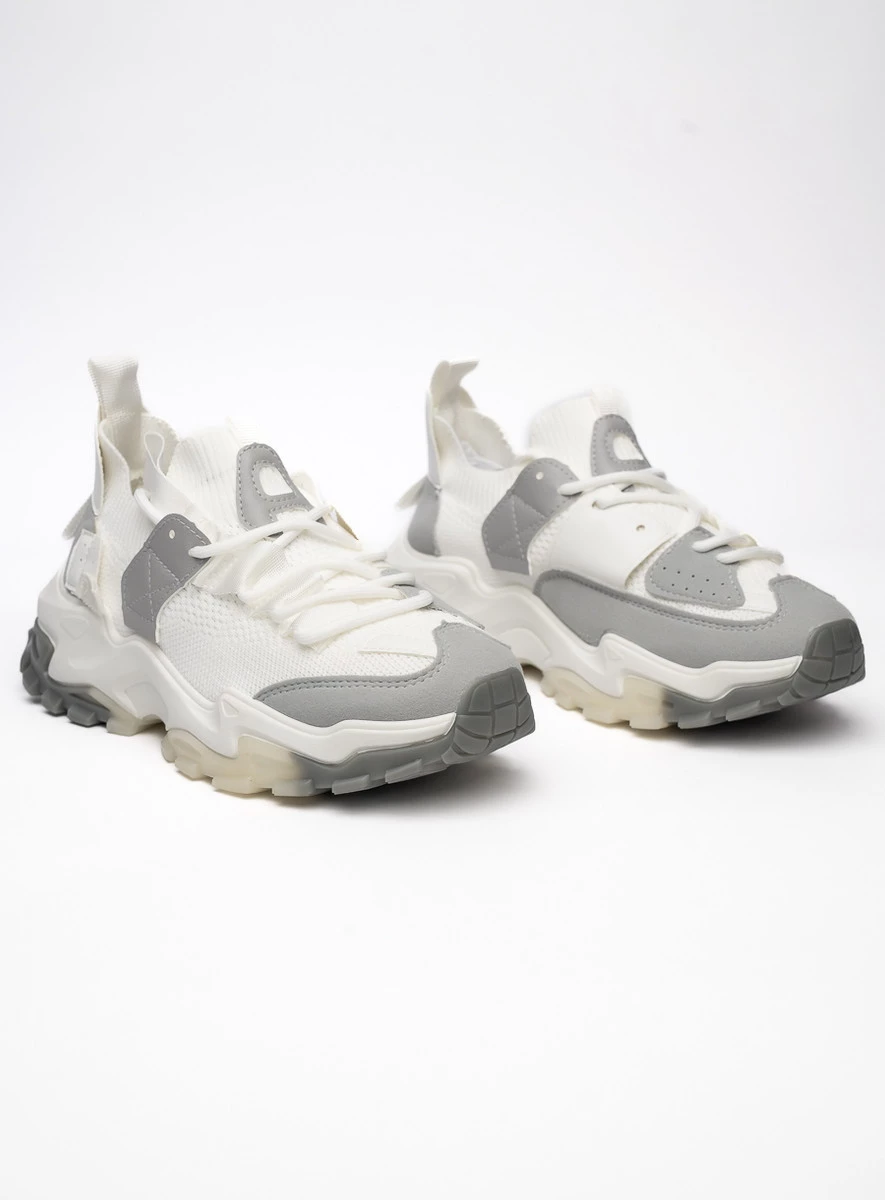 Damskie sneakersy ZELOS WHITE to nowoczesne połączenie komfortu i futurystycznego stylu. Ich elastyczna, biała dzianinowa cholewka doskonale dopasowuje się do stopy, gwarantując wygodę i oddychalność. Dynamiczna, gruba podeszwa zapewnia świetną amortyzację i dodaje butom nowoczesnego wyglądu. Szerokie taśmy i minimalistyczne detale podkreślają sportowy charakter, czyniąc ten model doskonałym wyborem na co dzień i do aktywnego trybu życia.