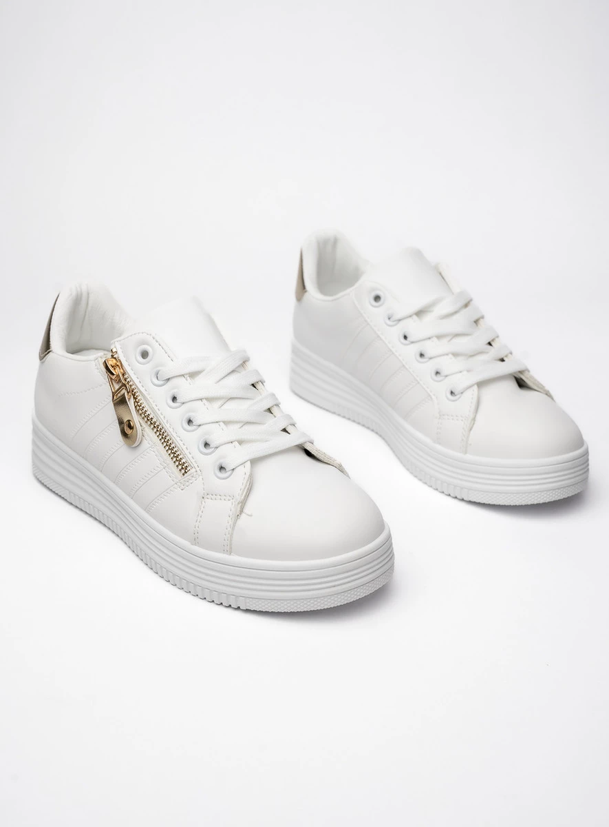 Damskie Sneakersy ZIPPY GOLD – Klasyczna Biel z Złotym Akcentem
