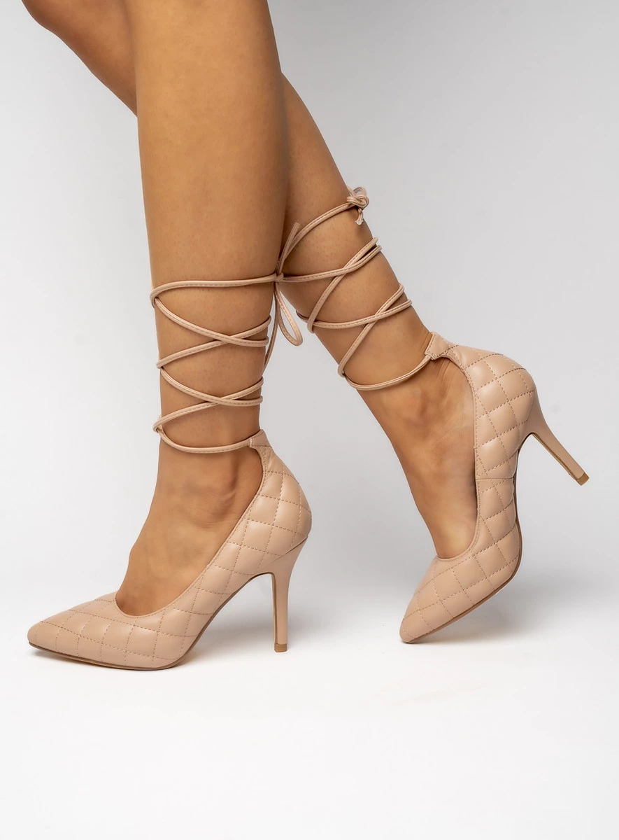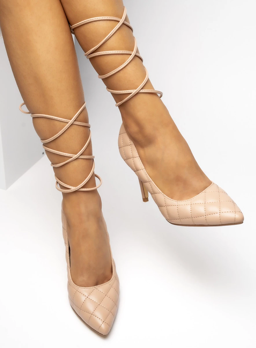 Damskie Szpilki CORA NUDE to kwintesencja kobiecości i subtelnego szyku. Pikowana cholewka w cielistym odcieniu nadaje im niepowtarzalnego charakteru, a wiązanie wokół kostki dodatkowo podkreśla linię nóg, dodając stylizacji zmysłowego akcentu. Smukły, wysoki obcas w połączeniu z szpiczastym noskiem optycznie wysmukla sylwetkę, dzięki czemu buty sprawdzą się doskonale zarówno na wieczorne wyjścia, jak i bardziej eleganckie okazje.