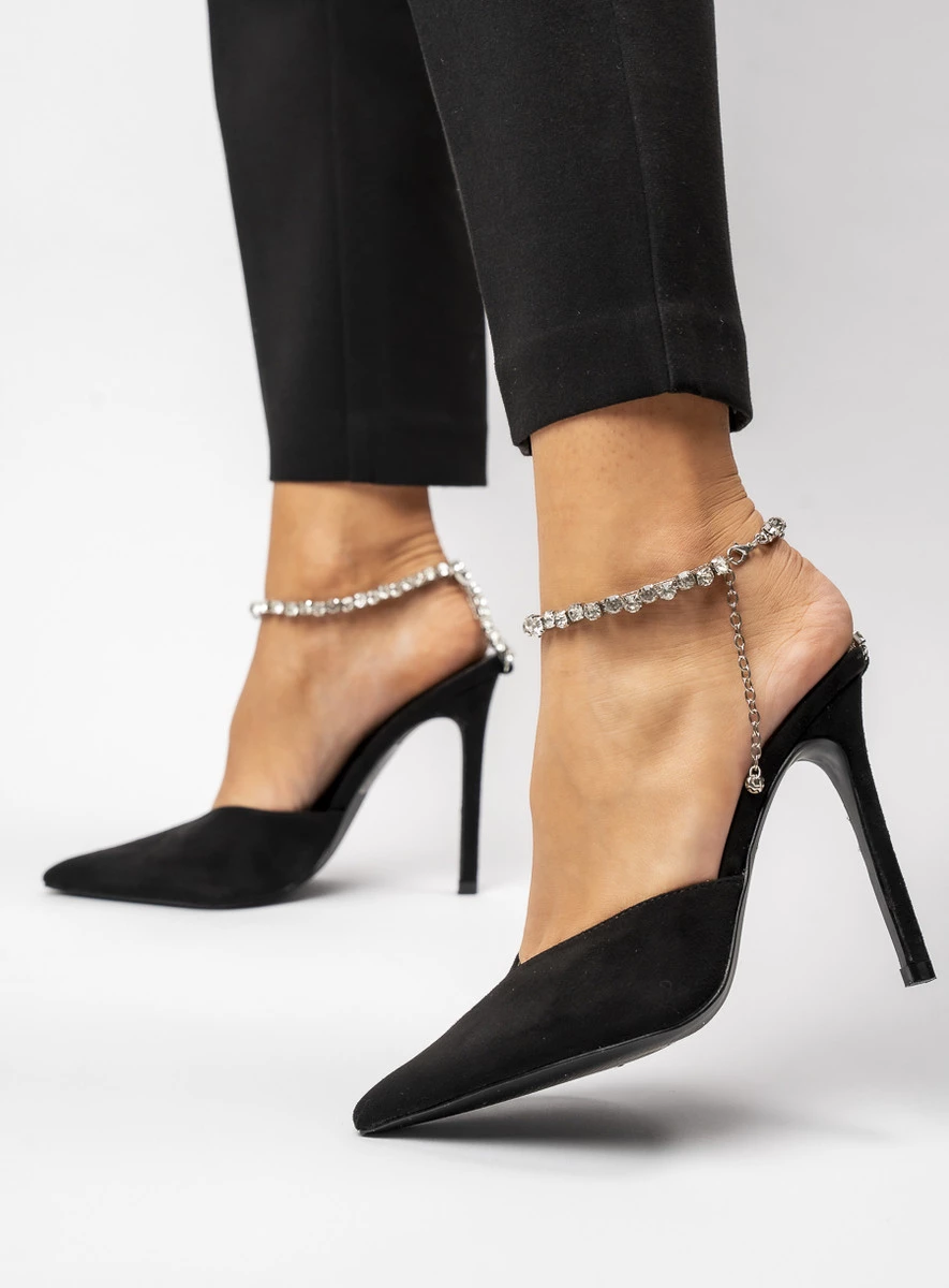 Damskie Szpilki KAYLA Black – Błyszczący Urok i Biżuteryjny Akcent