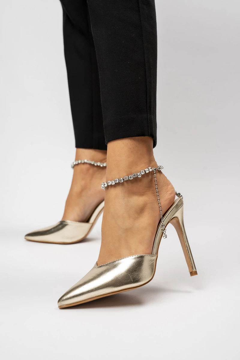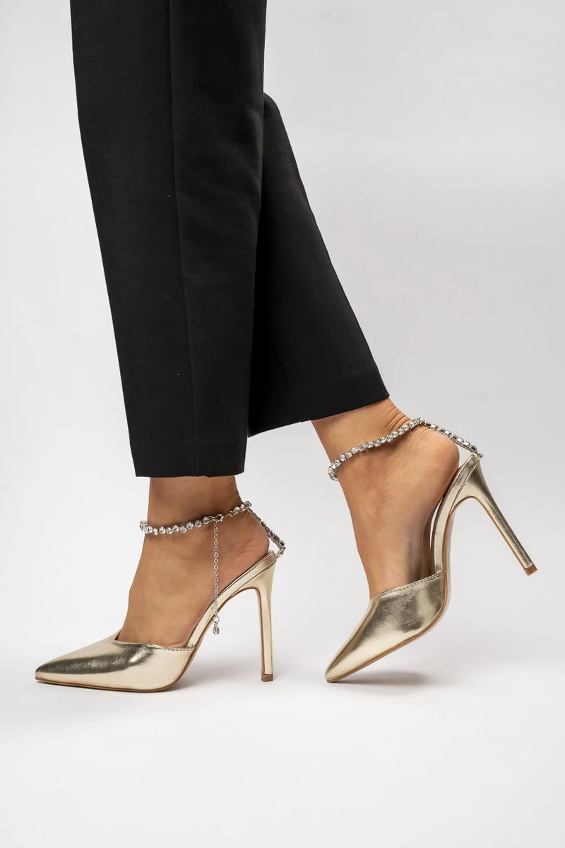 Damskie Szpilki KAYLA GOLD – Błyszczący Urok i Biżuteryjny Akcent