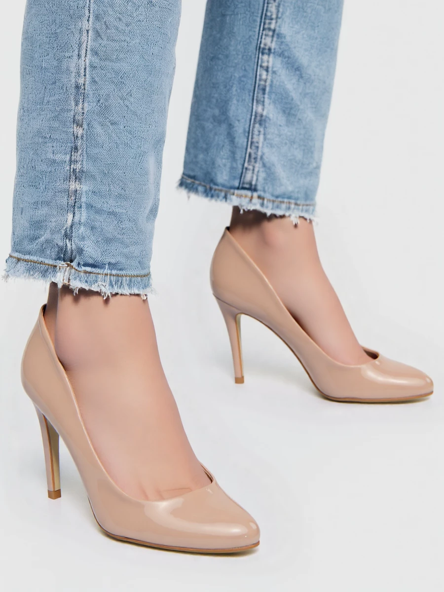 Szpilki LAVITA NUDE to doskonały wybór dla kobiet ceniących subtelność i ponadczasowy styl. Lakierowana powierzchnia w odcieniu nude podkreśla naturalne piękno, a smukły obcas optycznie wydłuża nogi. Idealne do eleganckich stylizacji biurowych, wieczorowych i codziennych.