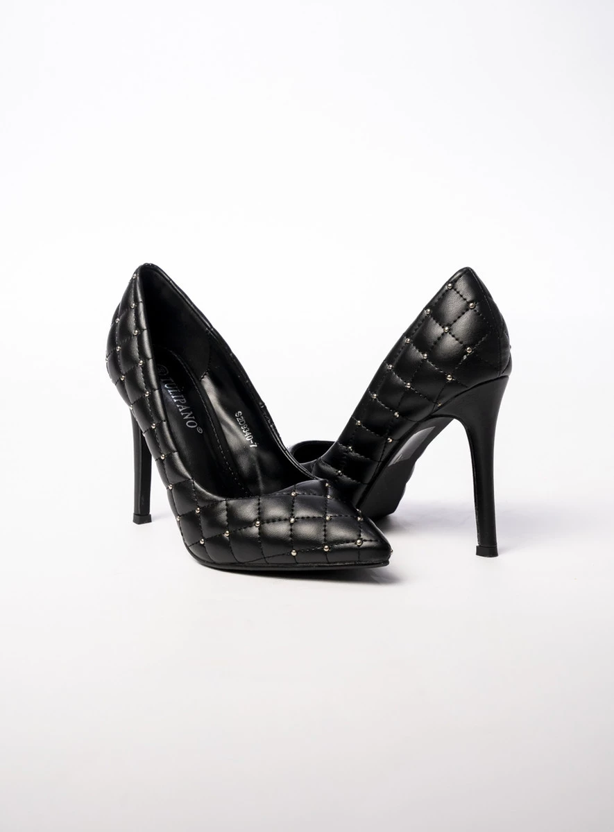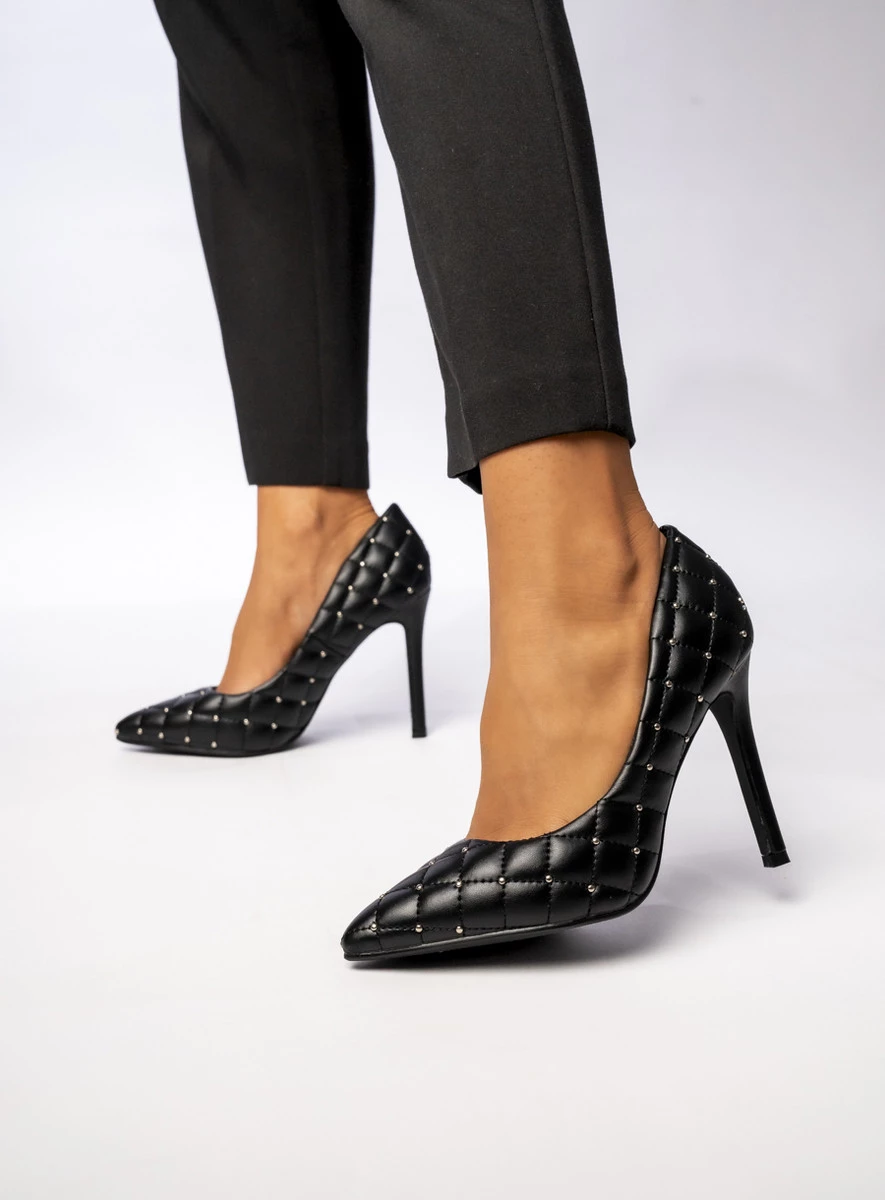 LUMORA BLACK to eleganckie szpilki na wysokim obcasie, ozdobione luksusowym pikowaniem z metalowymi detalami. Ich klasyczny, czarny kolor w połączeniu z wyjątkowym designem sprawia, że świetnie pasują zarówno do wieczorowych stylizacji, jak i eleganckich biznesowych outfitów. To idealne buty dla kobiet, które chcą dodać szyku i wyrafinowania swojemu wyglądowi.