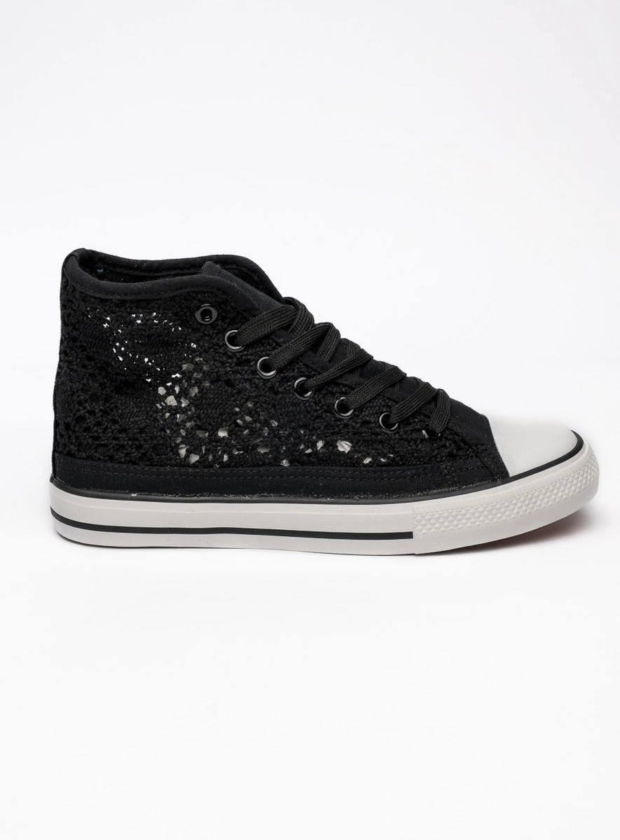 Damskie trampki BANDANA BLACK to wyjątkowe połączenie klasycznego fasonu z modnym wzorem bandany. Czarna cholewka ozdobiona stylowym, paisleyowym nadrukiem nadaje butom oryginalny wygląd. Dzięki klasycznej gumowej podeszwie i sznurowanemu zapięciu model ten jest idealnym wyborem dla kobiet ceniących komfort i styl.